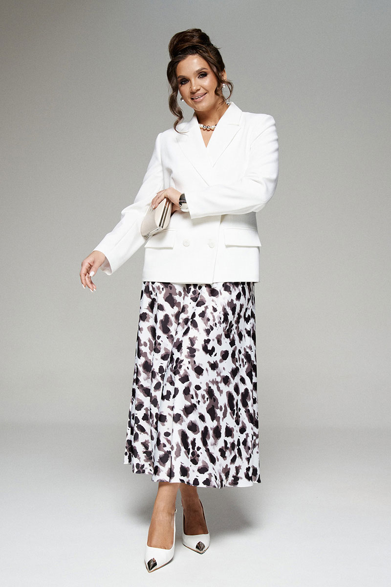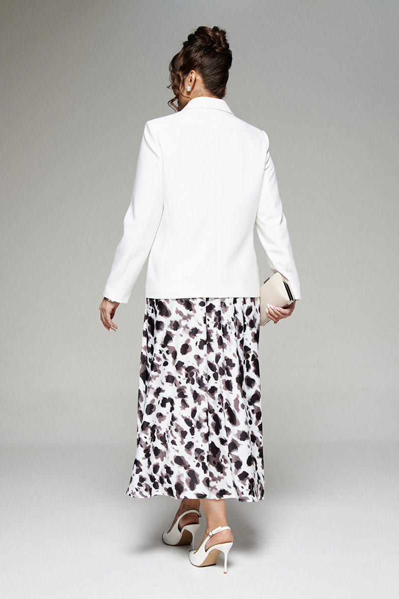 Элегантный и нарядный костюм, состоящий из двух предметов: жакета и юбки. Строгие элементы жакета и нежная изящная юбка - идеальный баланс для тех, кто начинает день в офисе, а заканчивает в неформальной обстановке.