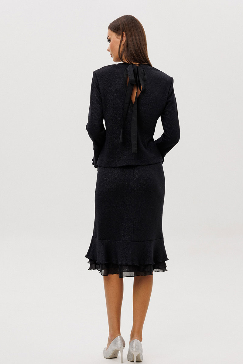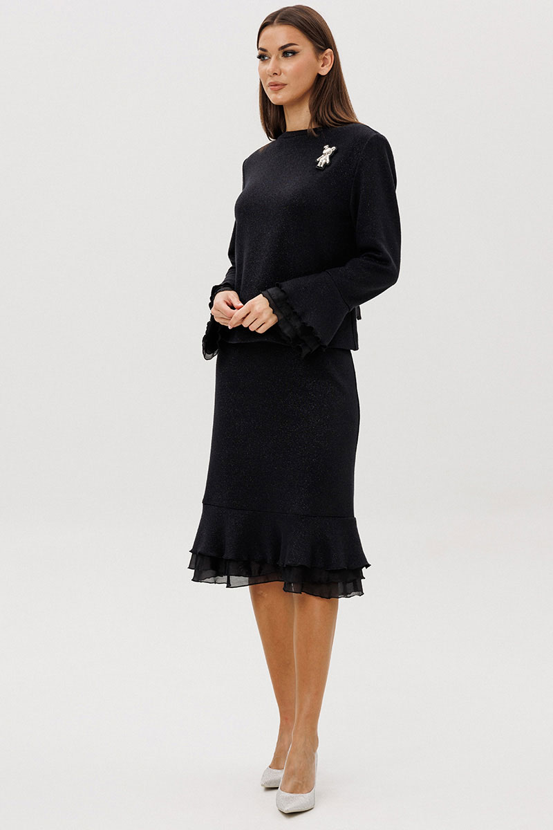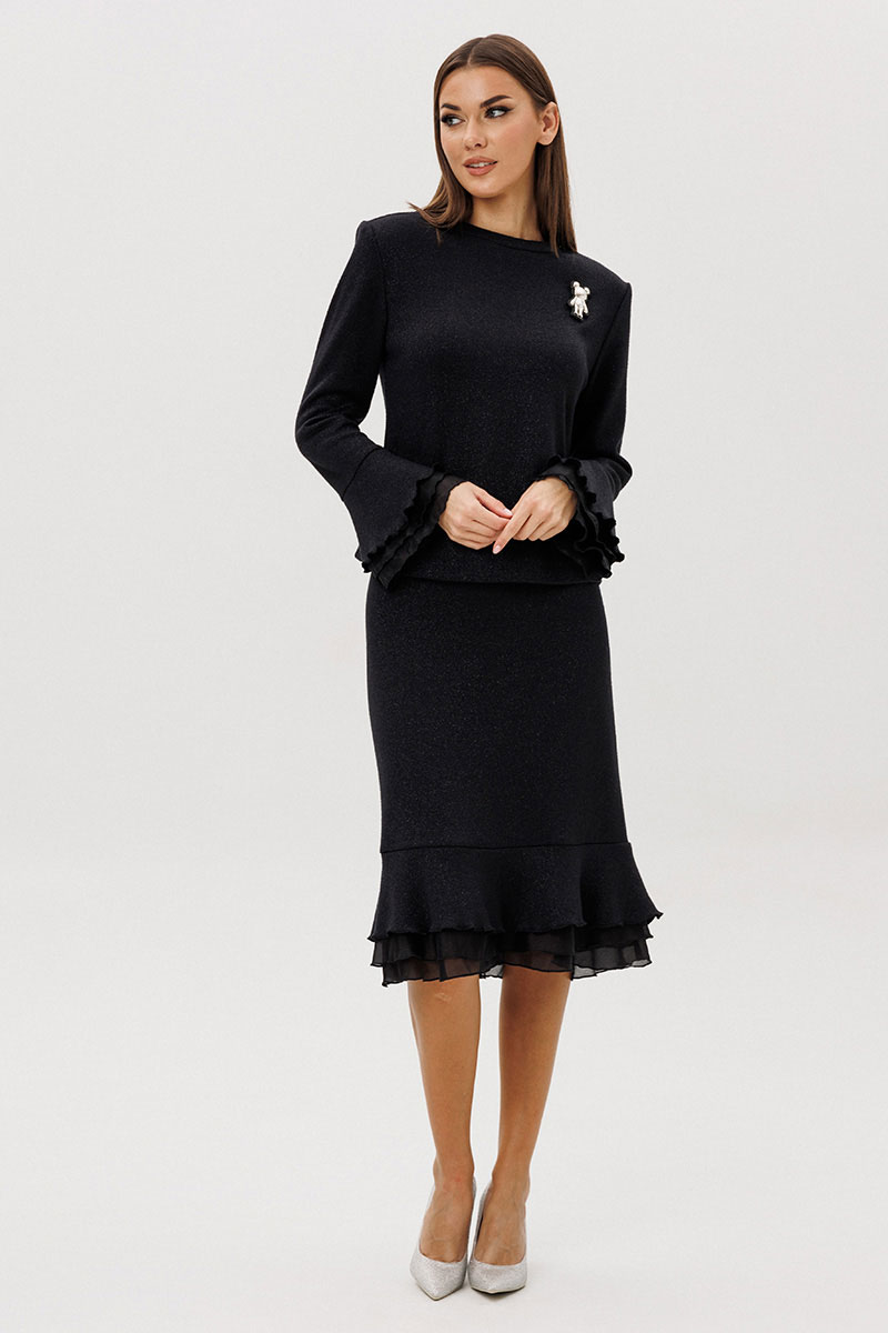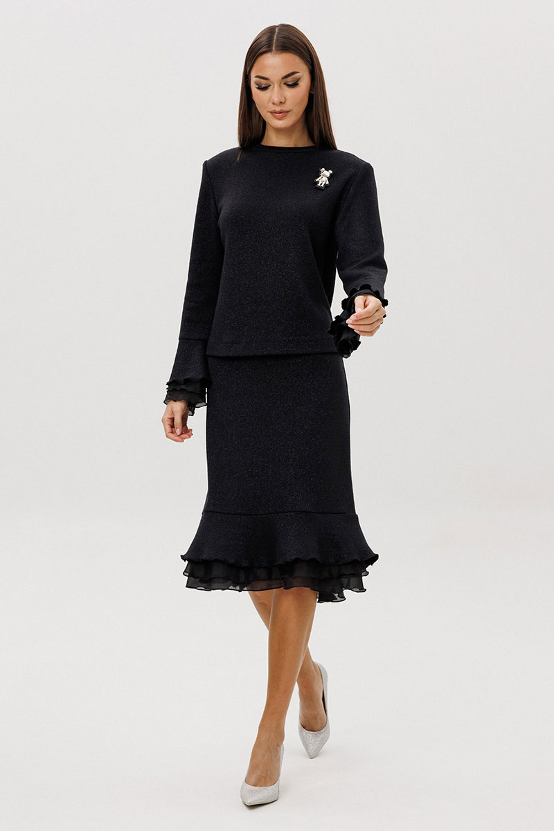 Изящный юбочный комплект из мягкого вискозного трикотажа с деликатным вкраплением люрекса - воплощение утончённости и женственности.