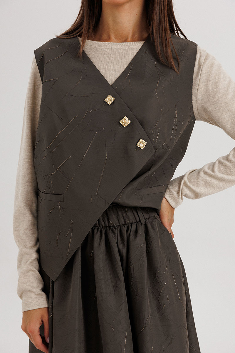 Асимметричная застёжка жилета на декоративные пуговицы