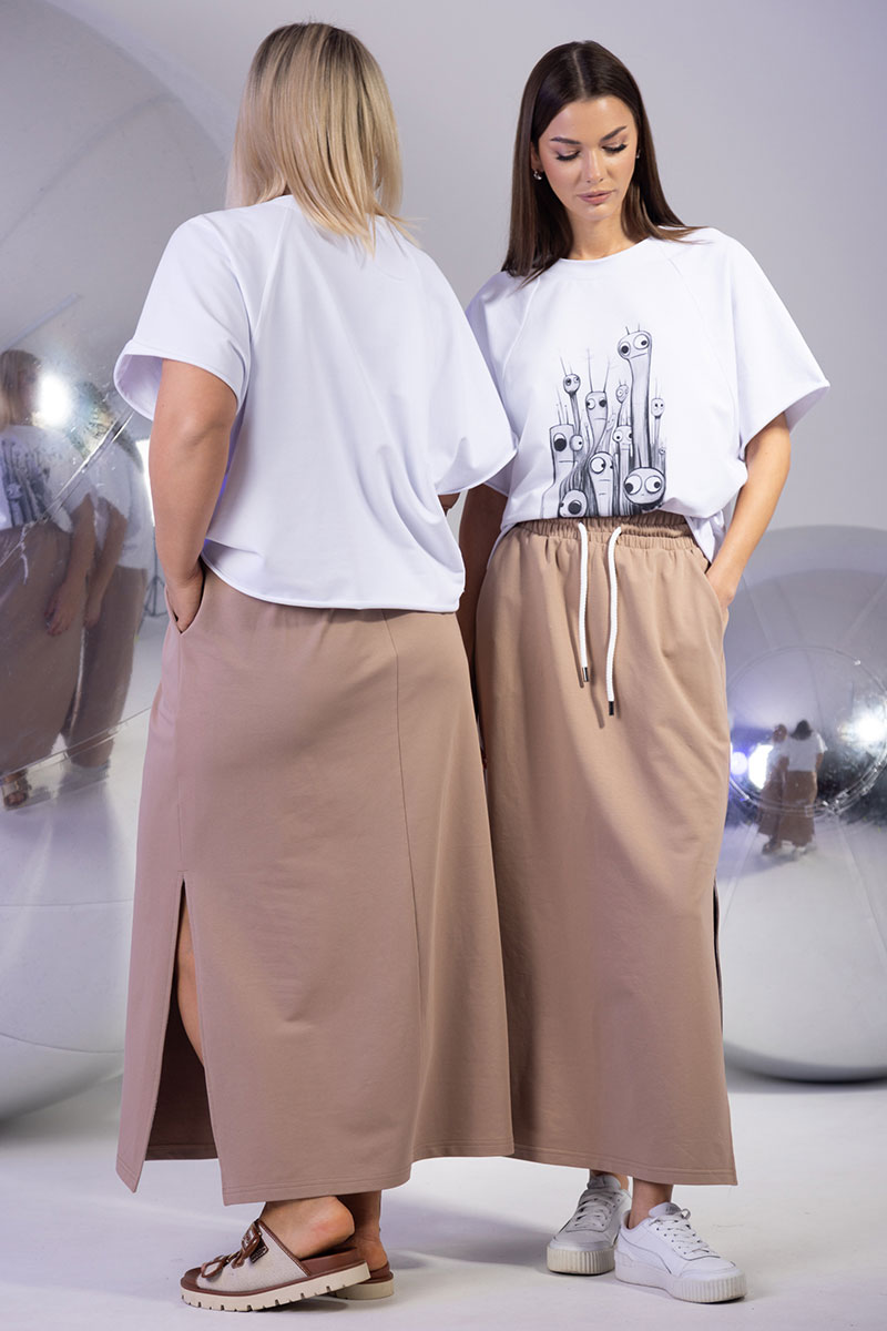 Спортивно-элегантный комплект: джемпер oversize и трикотажная юбка с разрезами