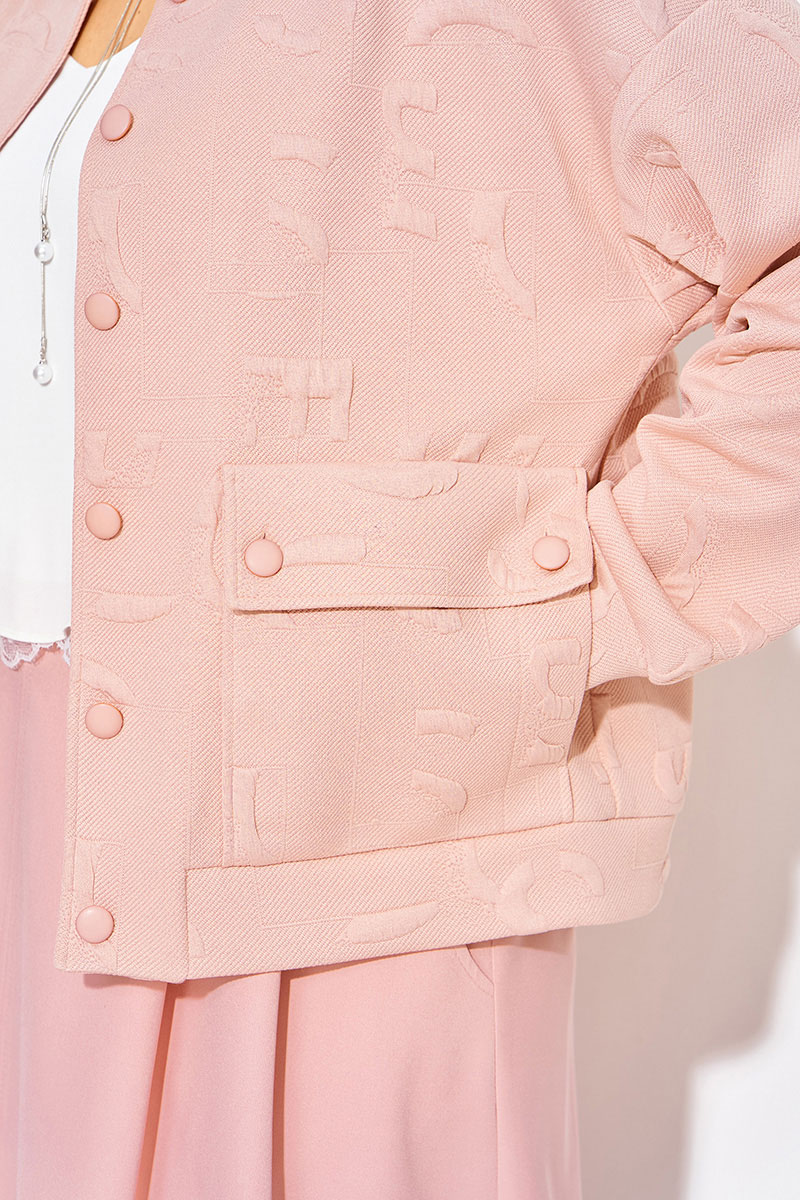 Жакет выполнен из мягкого, уютного трикотажа с жаккардовым теснением.