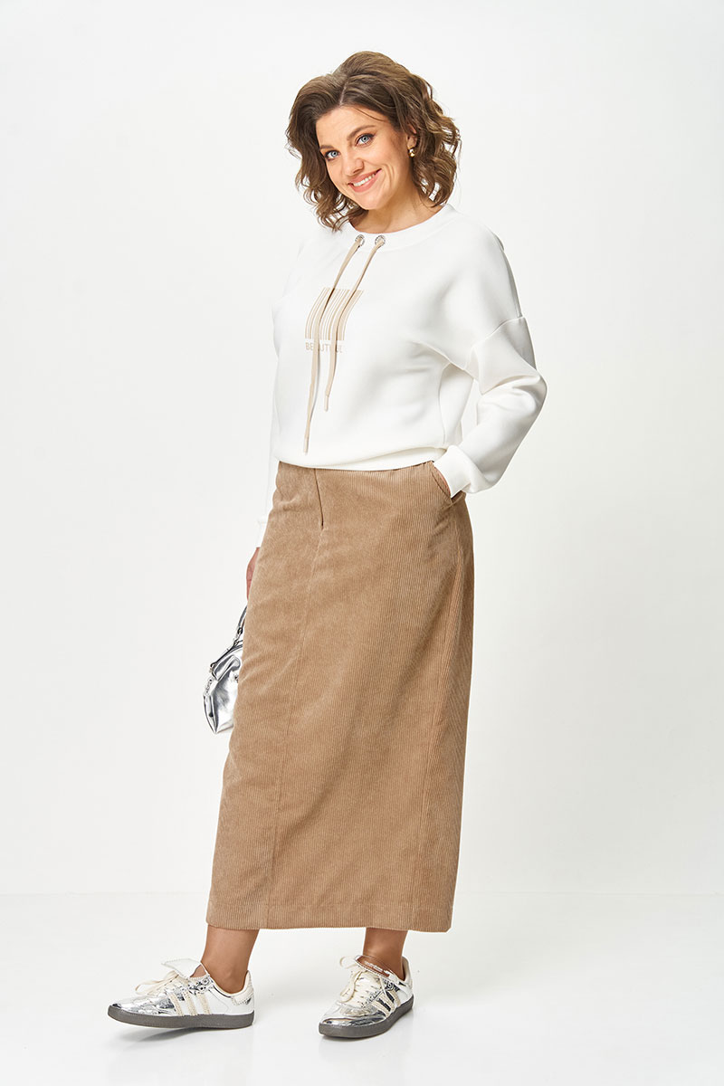 Мягкий уют и свет внутренней гармонии — в каждой детали этого комплекта. Джемпер из приятного трикотажа буквально светится от счастья: нежный, тёплый и воздушный, он окутывает комфортом и лёгкостью. Юбка из мягкого штрукса (вельвета) создаёт идеальный баланс — плотная, но податливая, она красиво подчёркивает линию силуэта и добавляет женственности. Вместе они создают стильный дуэт, а по отдельности — две самостоятельные вещи, которые легко впишутся в любой гардероб.