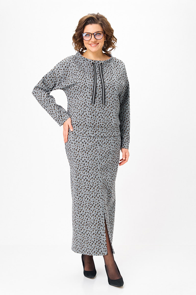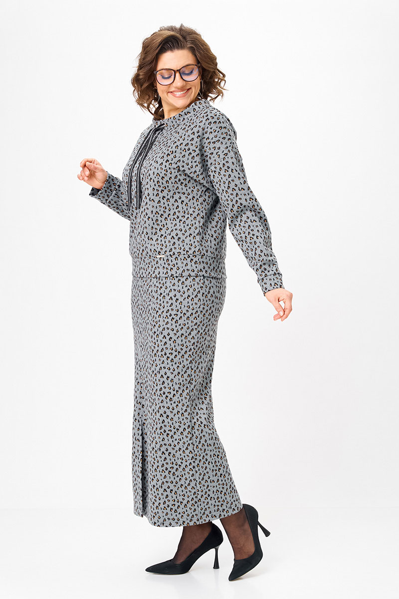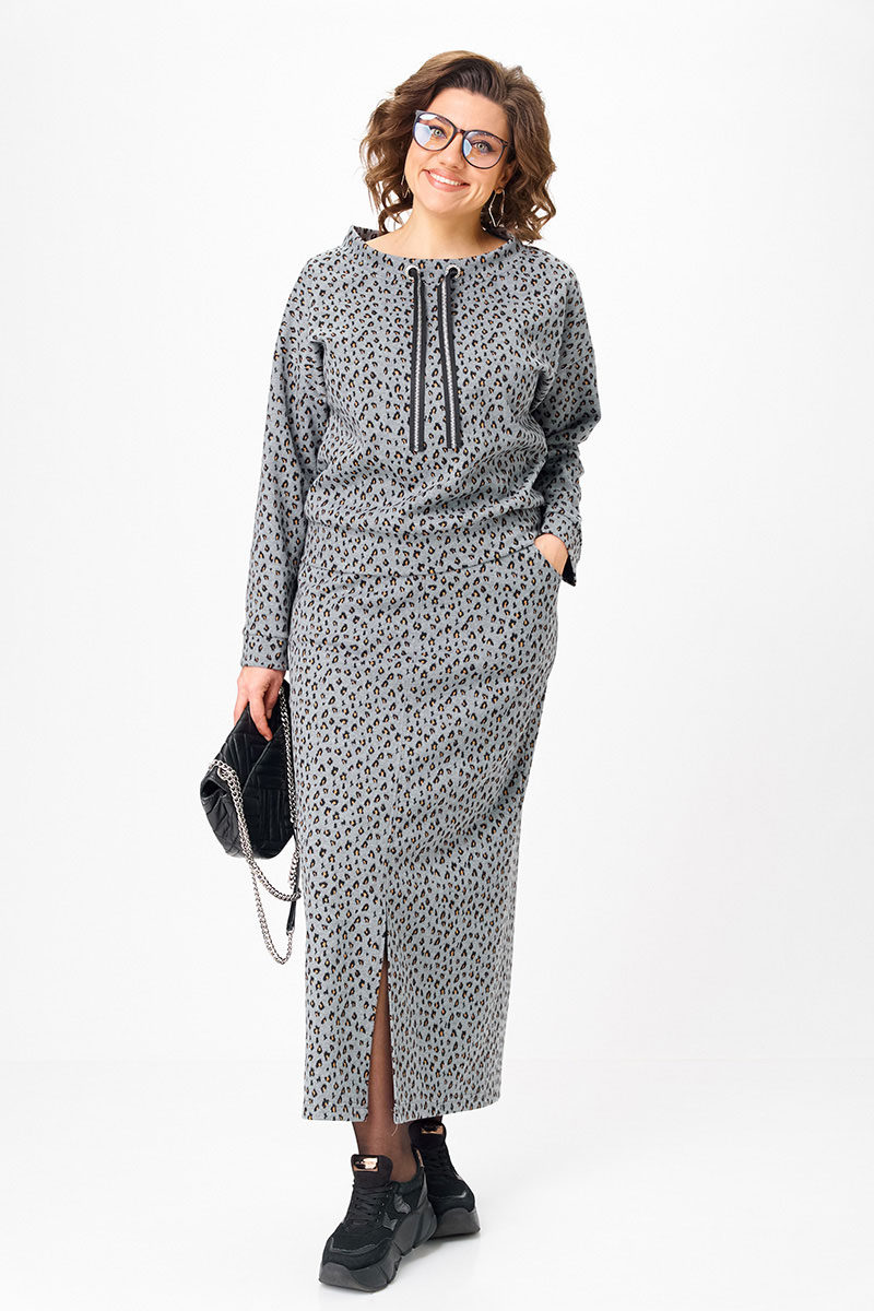 Плотный трикотаж хорошо держит силуэт, не «плывёт» и не вытягивается, при этом остаётся комфортным в движении. Принт — деликатный, небанальный, выглядит дорого и актуально вне сезона.