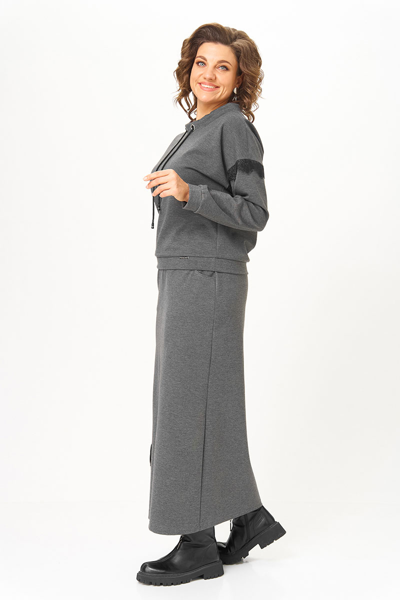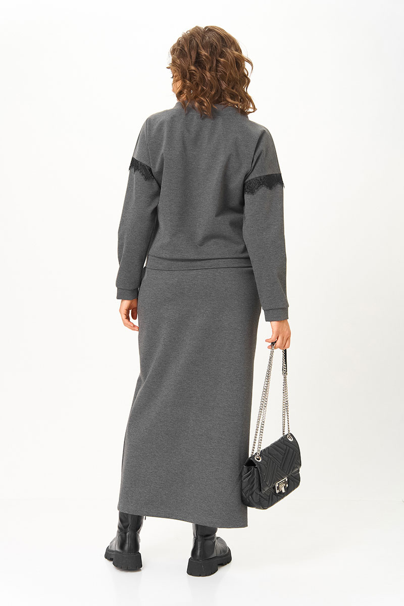 Позвольте себе выглядеть идеально даже в повседневной жизни! Этот модный женский костюм из плотного трикотажа, насыщенного графитового цвета — ваш новый must-have: