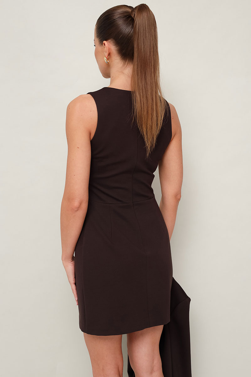 Стильный 3-х предметный комплект, состоящий из платья, юбки и жакета. Платье прилегающего силуэта, отрезное по линии талии в длине мини. Горловина оформлена вырезом каре. Застёжка в среднем шве по спинке на потайную молнию.