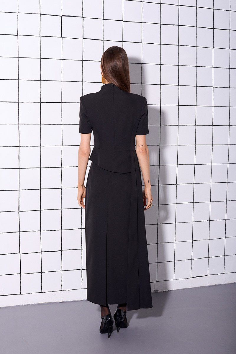 Комплект, состоит из блузы и юбки-миди, изготовлены из костюмной ткани.