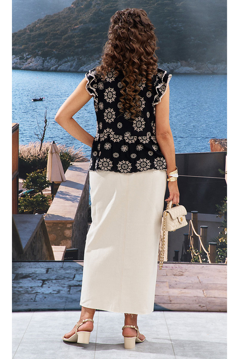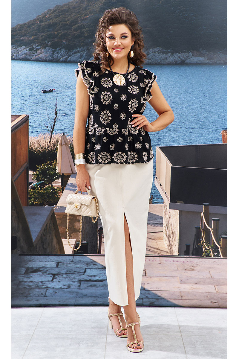 Летний комплект, состоящий из блузки и юбки, который подарит Вам ощущение лёгкости и непринуждённости. Вышитый дизайн блузы отлично гармонирует со светлым низом, создавая тем самым идеальный летний комплект.