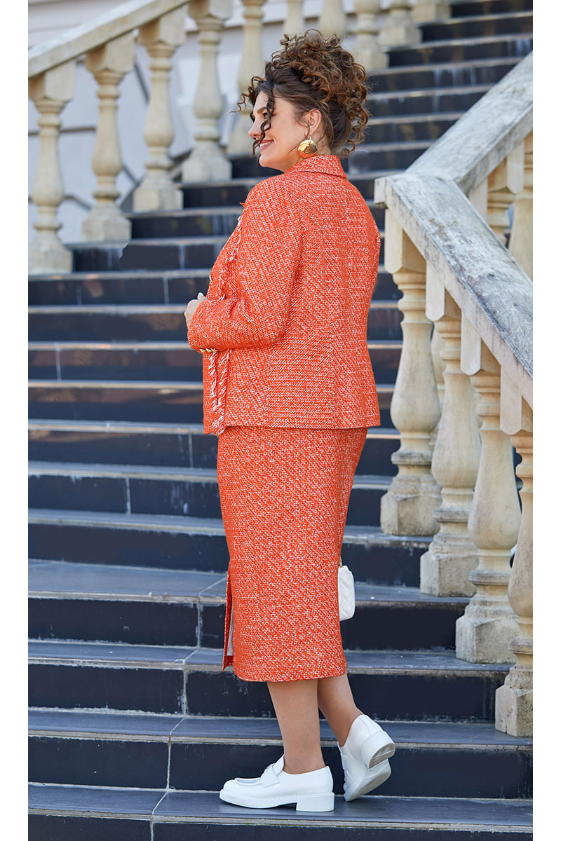 Невероятно яркий двухпредметный костюм для Вашего неповторимого образа выполнен из приятной на ощупь ткани помогая создать стильный образ, который будет уместен как для торжественных случаев, так и для деловых встреч.