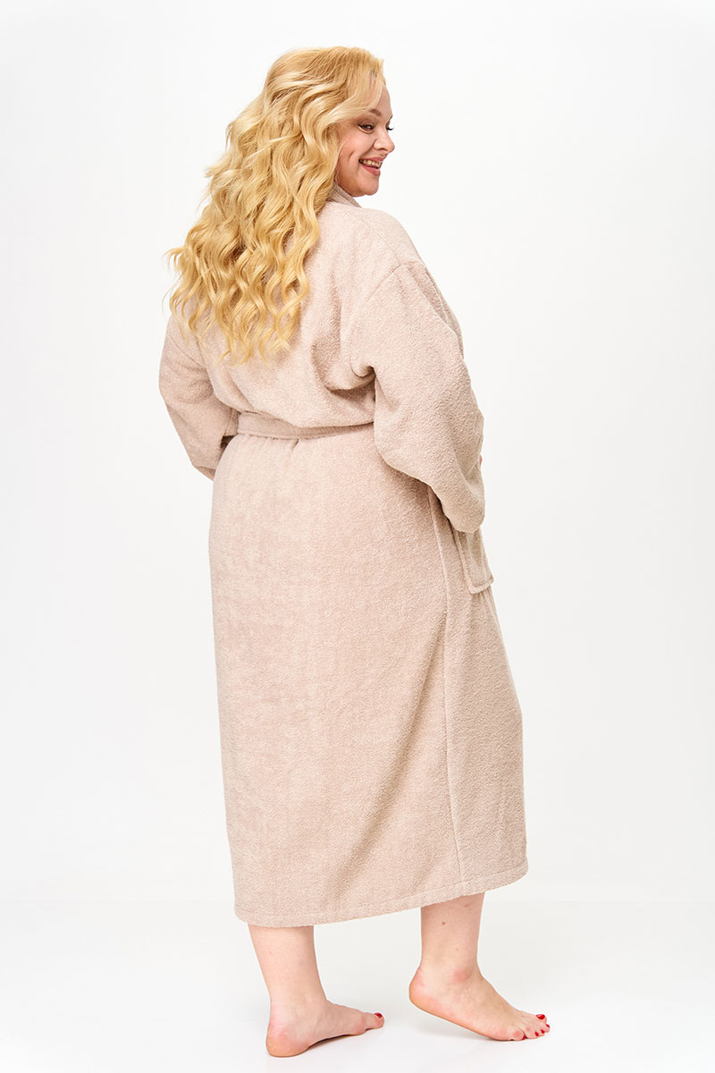 Этот халат создан для тех, кто ценит уют, свободу движений и настоящую заботу о себе. Он не просто тёплый — он как объятие, которое ждёт тебя после душа, бани или просто долгого дня. Универсальный фасон, нейтральный благородный оттенок и ощущение уюта с первого прикосновения.