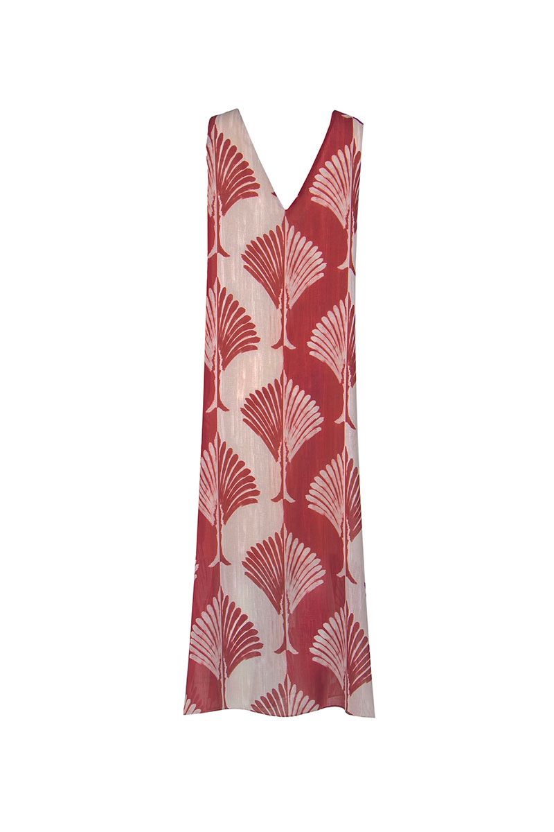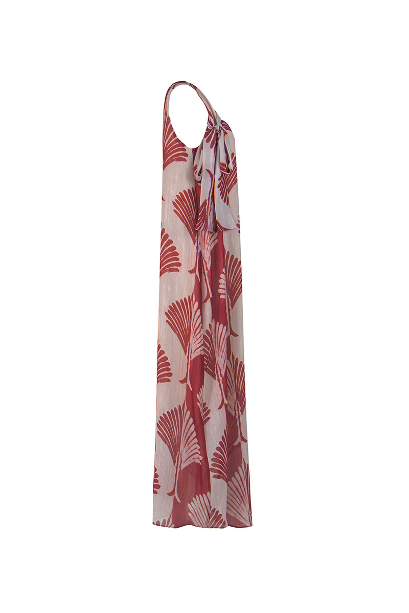 Платье женское, расширенное книзу, длиной макси, без рукавов. Горловина с V-образным вырезом по переду и спинке. Спинка со средним швом. На бретелях съемные банты.