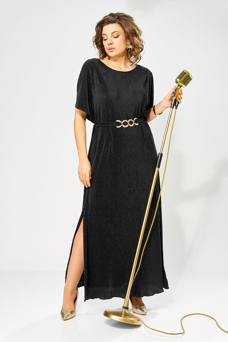Элегантное вечернее платье в пол из струящейся ткани с эффектом жатки (кринкл). Лёгкая текстура создаёт красивое мерцание и динамику при каждом движении. Платье выполнено в лаконичном крое с двумя боковыми швами, которые формируют идеальный силуэт без лишних деталей. Пояс с декоративной пряжкой подчёркивает талию, а разрезы по бокам добавляют легкости и женственности.