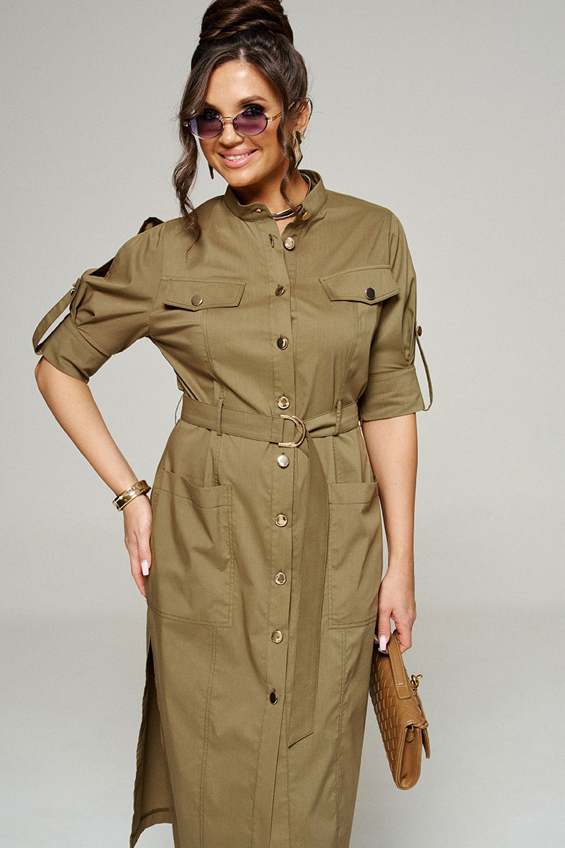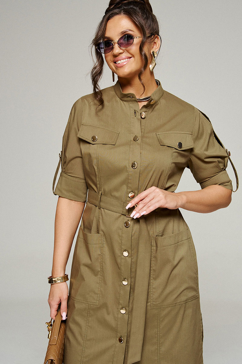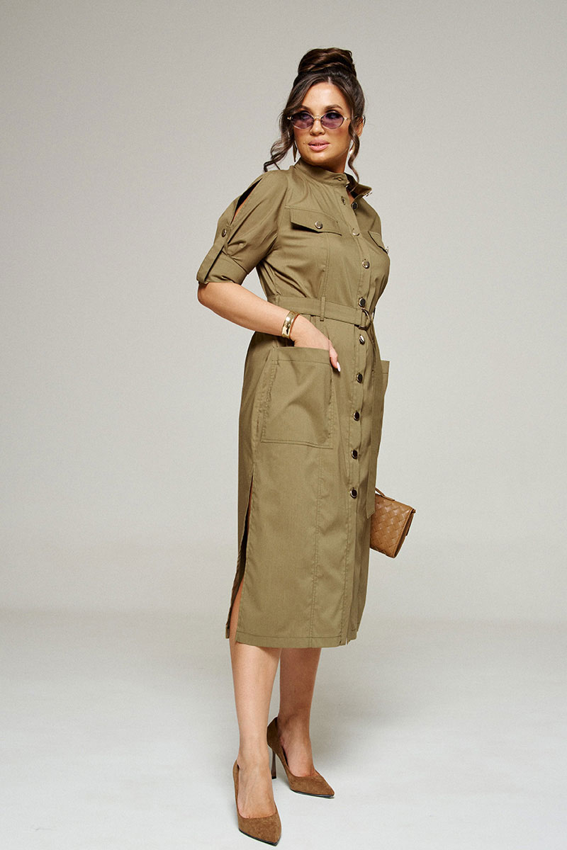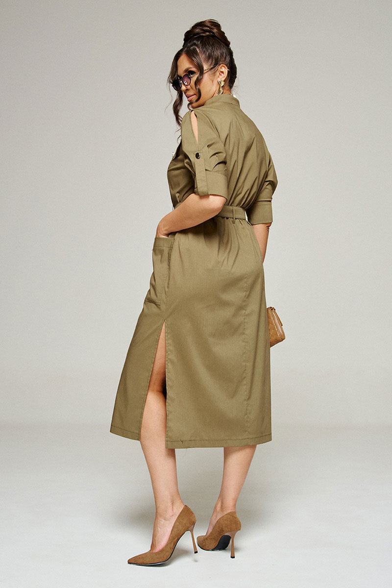 Платье женское полуприлегающего силуэта, длиной «миди», в строгом и практичном стиле «сафари» из смесового полотна с натуральным волокном – хлопок.