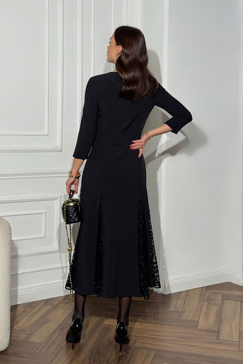 Нижняя часть платья спинки и переда с рельефами, в которые вставлены клинья из отделочной ткани.