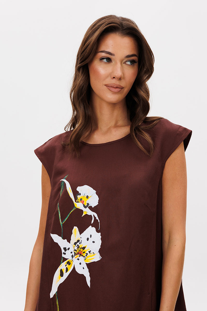 Лен - главный тренд этого года и самый востребованный материал в любой жаркий сезон. Это легкое дышащее полотно всегда смотрится эффектно дорого, особенно в оттенке горького шоколада.