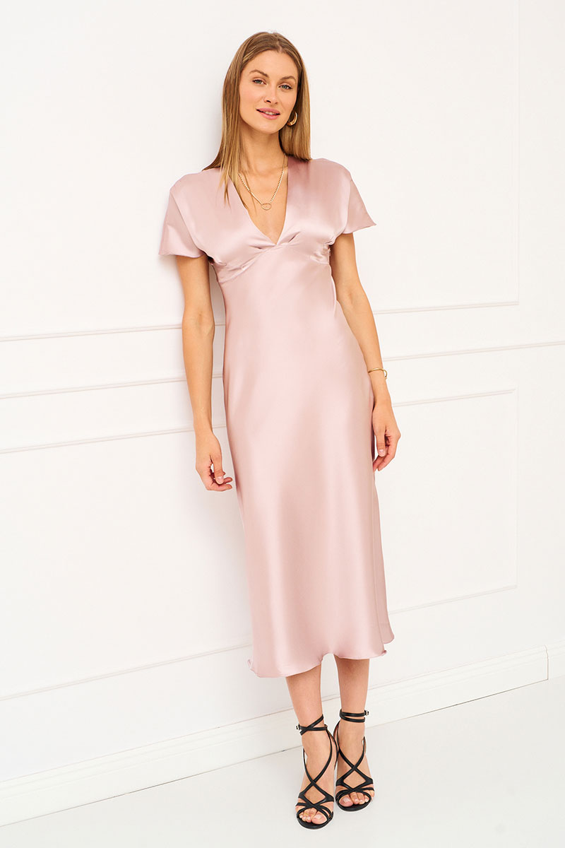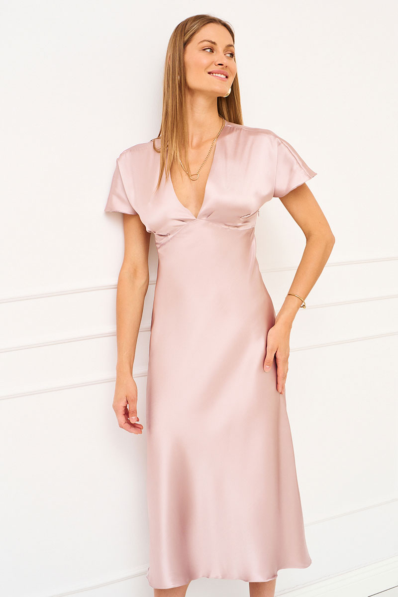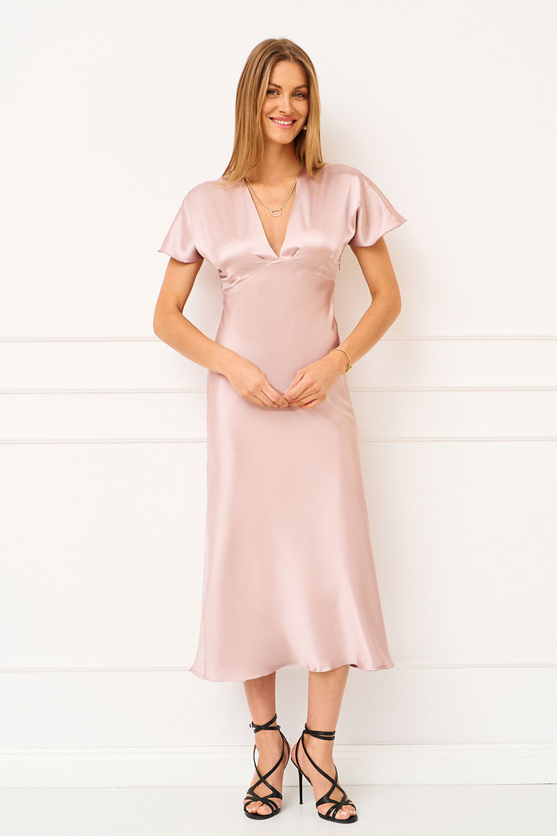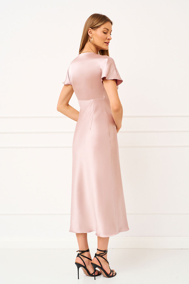 Женское платье полуприлегающего силуэта выполнено из плотного сатина с подрезами и складками, расположенными под линией груди. Рукава цельнокроеные; горловина имеет v -образную форму; в боковом шве - молния. Платье полностью соответствует заявленному размеру. Пожалуйста, пользуйтесь таблицей замеров готового изделия.