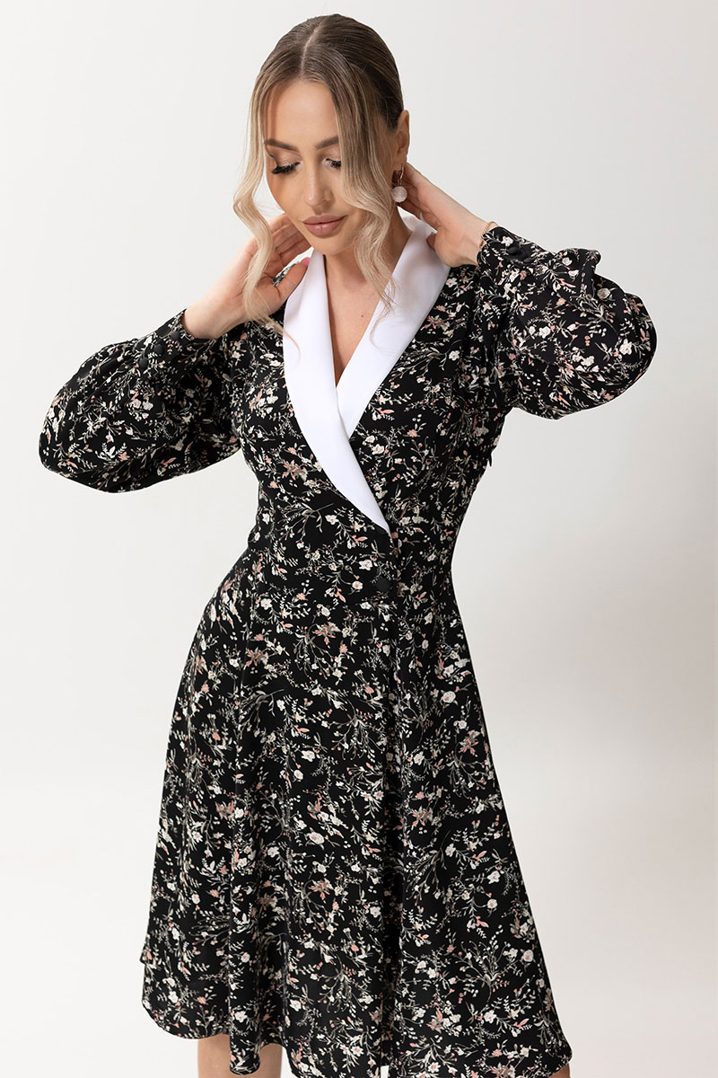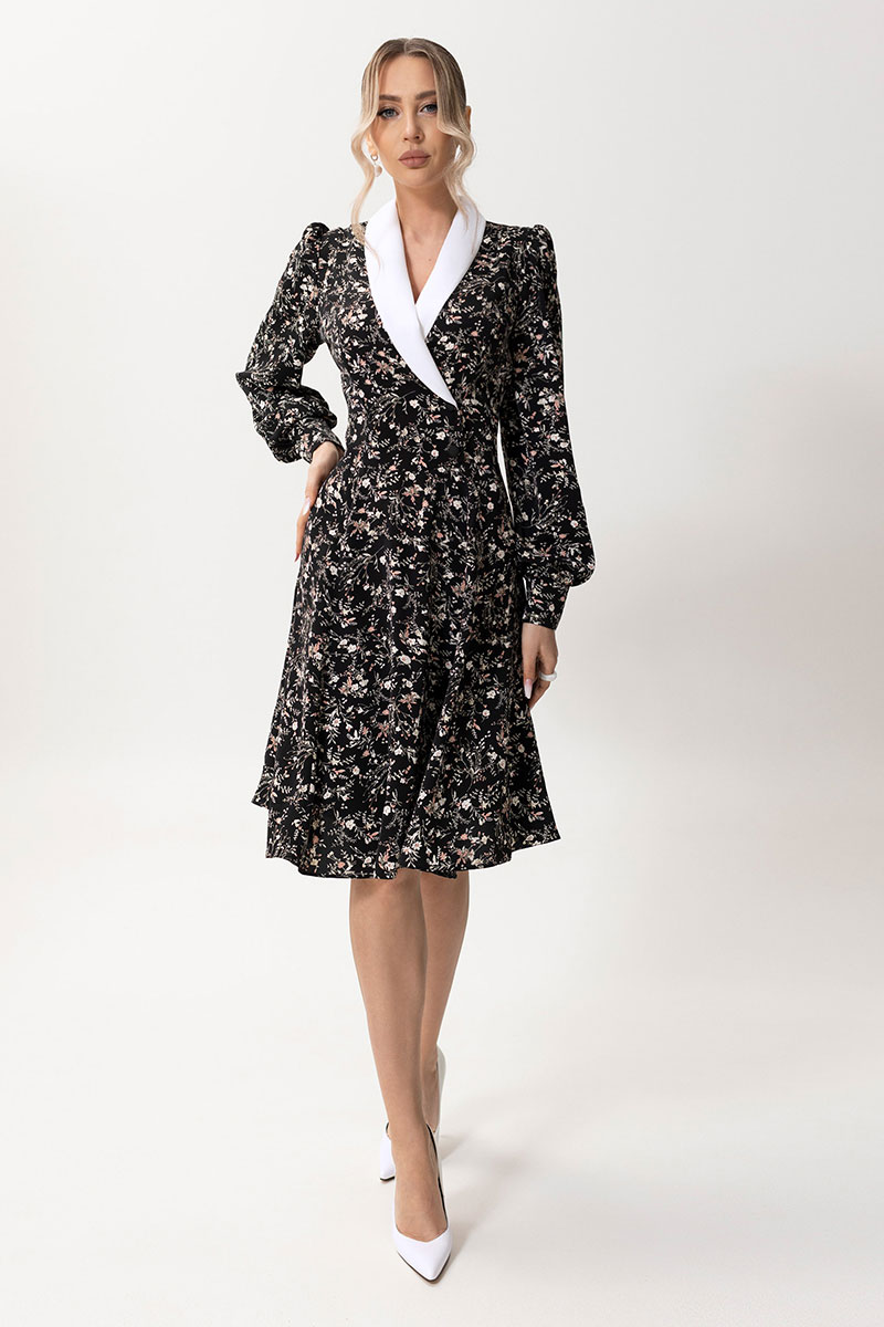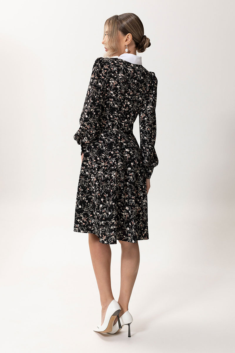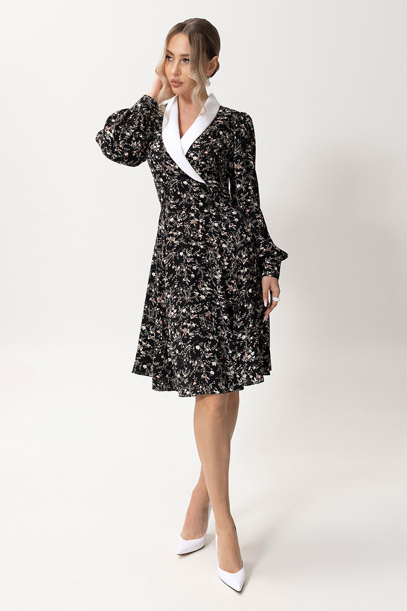 Цветовая гамма для верха, подкладки, фурнитуры, отделки: платье из ткани с цветочным рисунком. Воротник контрастен основной ткани