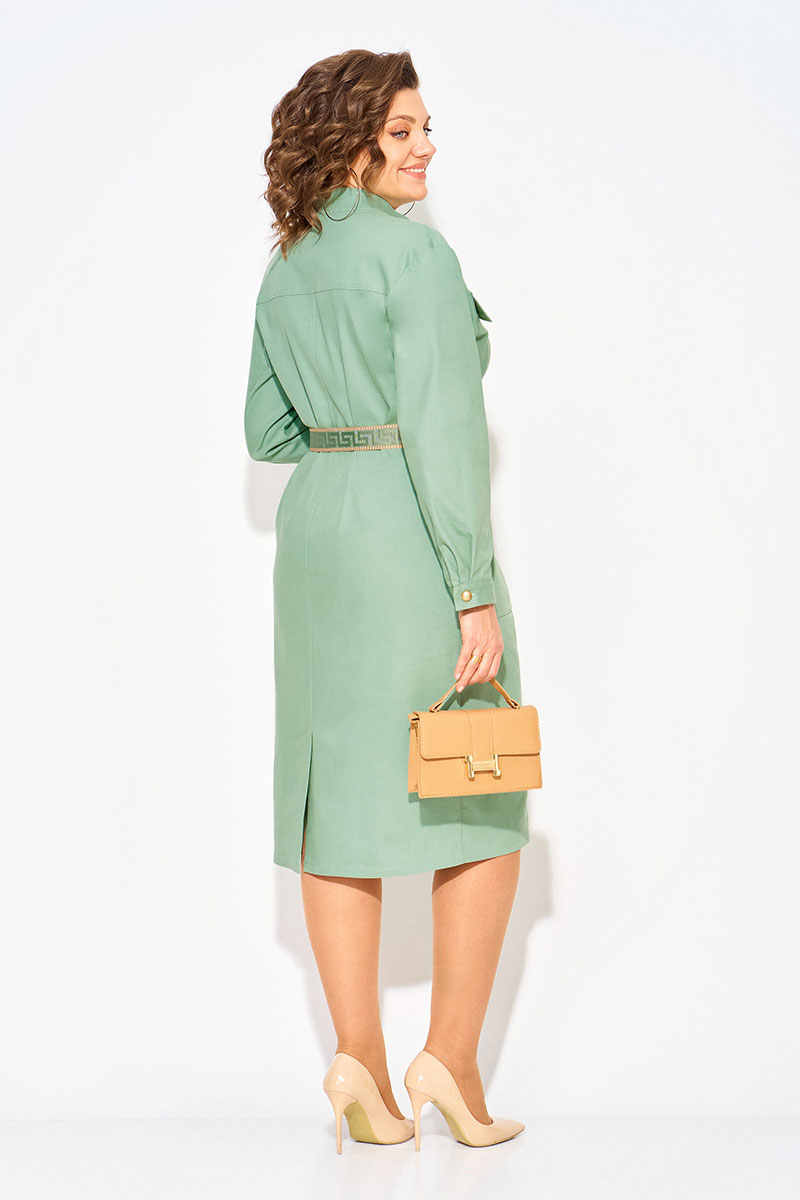 Стильное и эффектное платье, в стиле- сафари! Модель выполнена из хлопкового джинса! Платье полуприталенного силуэта, длиной за колено. По талии отрезное. Воротник - небольшая стойка, переходящая в застежку на металлическую молнию. Рука рубашечный, полной длины. По низу рукава предусмотрен манжет с застежкой на пуговку. По полочке расположены накладные карманы с клапаном. В платье также предусмотрены накладные карманы. По спинке кокетка с центральным швом переходящий в разрез на свободу движения. В платье предусмотрен съёмный пояс с металлической пряжкой!