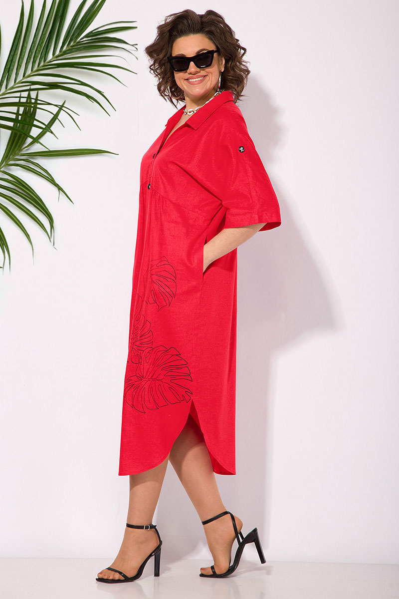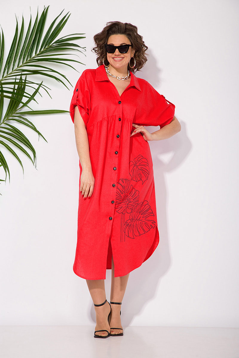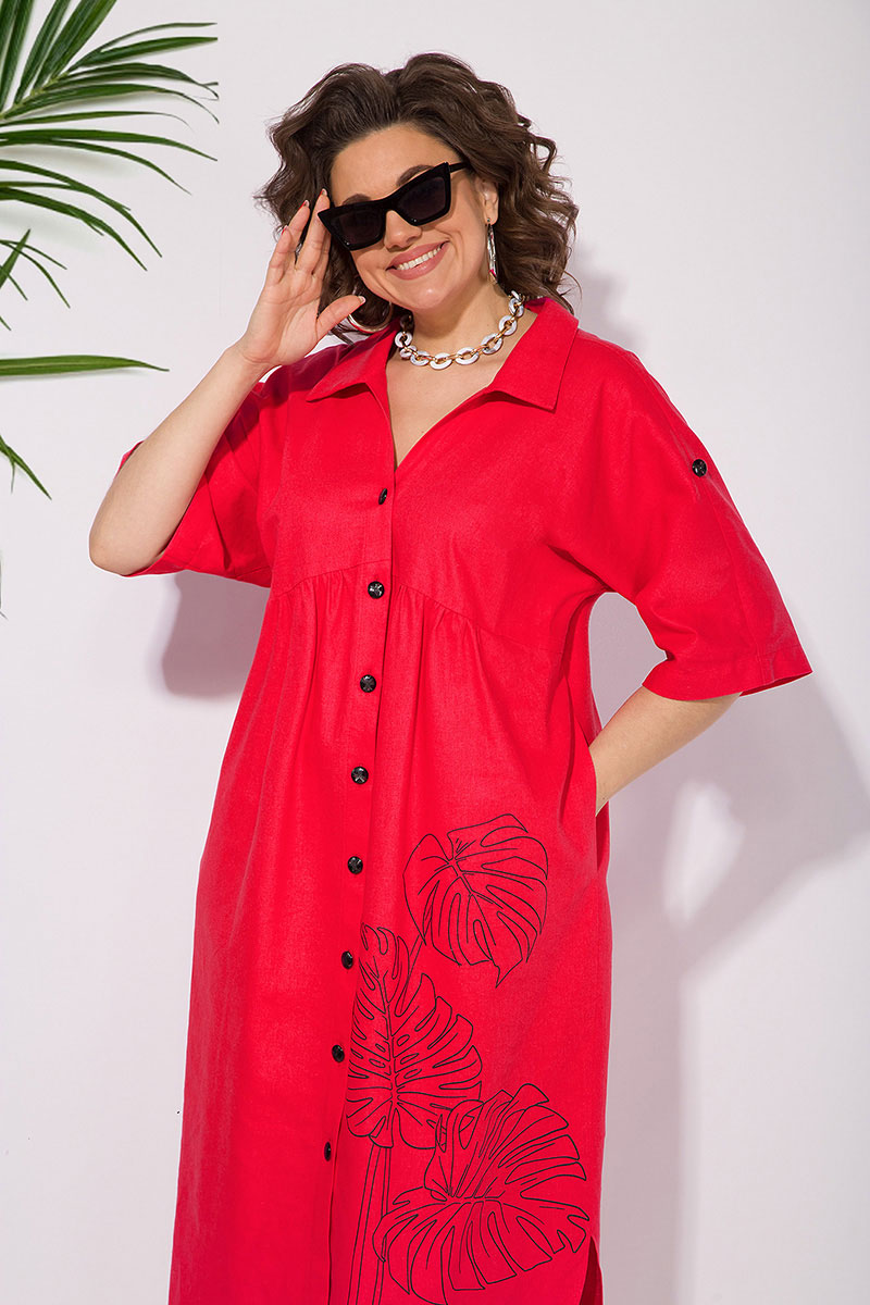 Эксклюзивное и воздушное платье-рубашка модного кроя, выполнено из натурального льна, который подарит Вам незабываемые ощущения комфорта и свободу движениям. Платье с цельнокроеным спущенным рукавом с регулировкой на пате. Застежка центральная на петли и пуговицы, с V- образным вырезом горловины с небольшим отложным воротником. Чуть ниже линии груди предусмотрен подрез с небольшой сборкой. По бокам расположены рабочие карманы. Низ изделия овальной формы с разрезами! Спинка цельная, без особенностей. По полочке ассиметрично расположена печать – накат монстера. Идеальный выбор для комфортного и стильного образа!