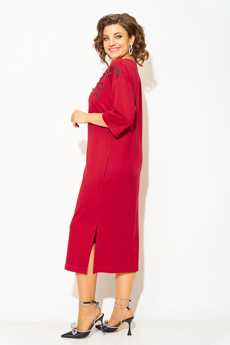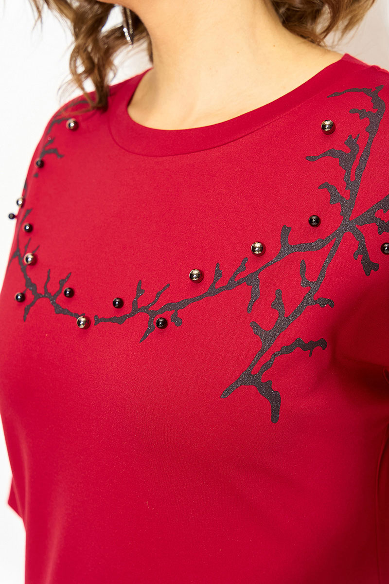 Трикотажное платье алого цвета подчеркнет Вашу женственность и добавит образу смелости! Материал, из которого выполнена модель - мягкий, комфортный и теплый! Силуэт платья прямого кроя, с рукавом длиной ¾-ти на спущенном плечевом поясе. Вырез горловины округлый, на мягкой планке. По бокам расположены разрезы на свободу движения. Изюминка данной модели- очаровательная печать накат с мерцающим эффектом украшенная бусинами и жемчугом. Такое платье можно носить с высокими сапогами, батальонами и даже с туфлями на каблуке. Добавьте к нему крупную бижутерию, кожаный ремень или перчатки - и создайте поистине элегантный и стильный образ!