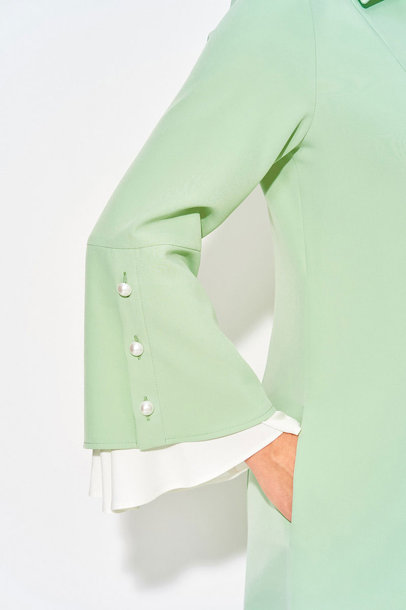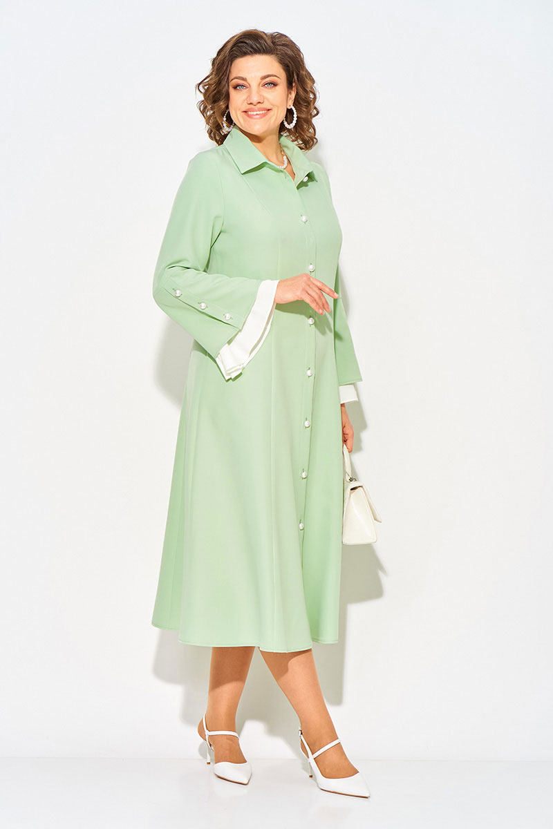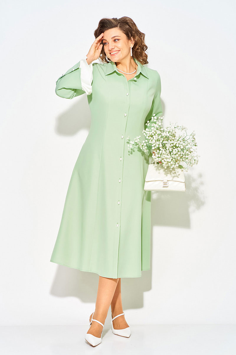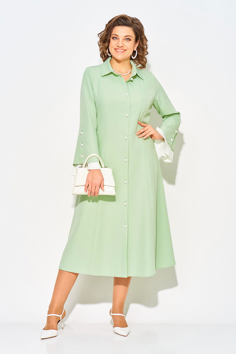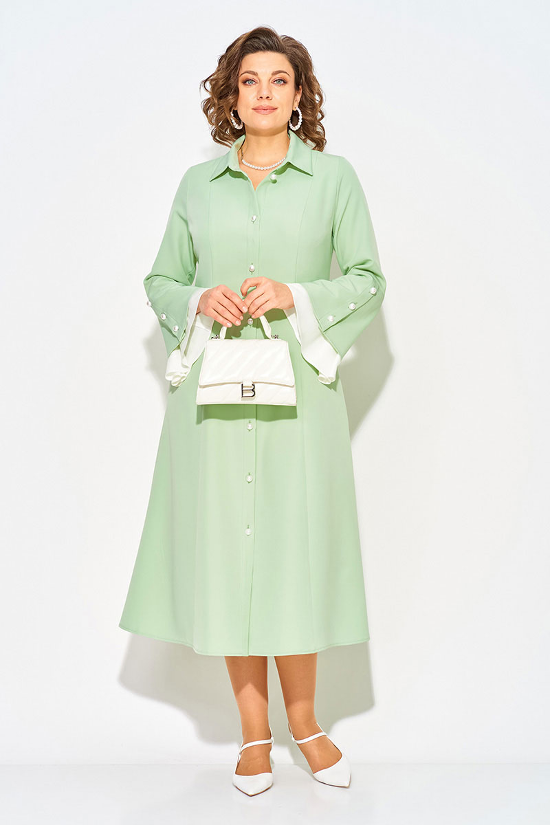 Нежное и романтическое, нарядное женское платье, длиной миди - станет отличным выбором для девушек и женщин, которые ценят комфорт и стиль. Модель полуприлегающего силуэта с продольными рельефами по полочке и спинке. Воротник отложной на цельнокроеной стойке. Застежка центральная на петли и пуговицы на планке. Эффектный длинный рукав, слегка расклешен к низу; имеет рюшу из отделочной ткани нежно-жемчужного цвета. Пуговицы под жемчуг украшают планку рукава и изделия! В платье имеются боковые карманы. Станьте обладательницей винтажного платья, чтобы подчеркнуть свою индивидуальность и создать стильный образ.