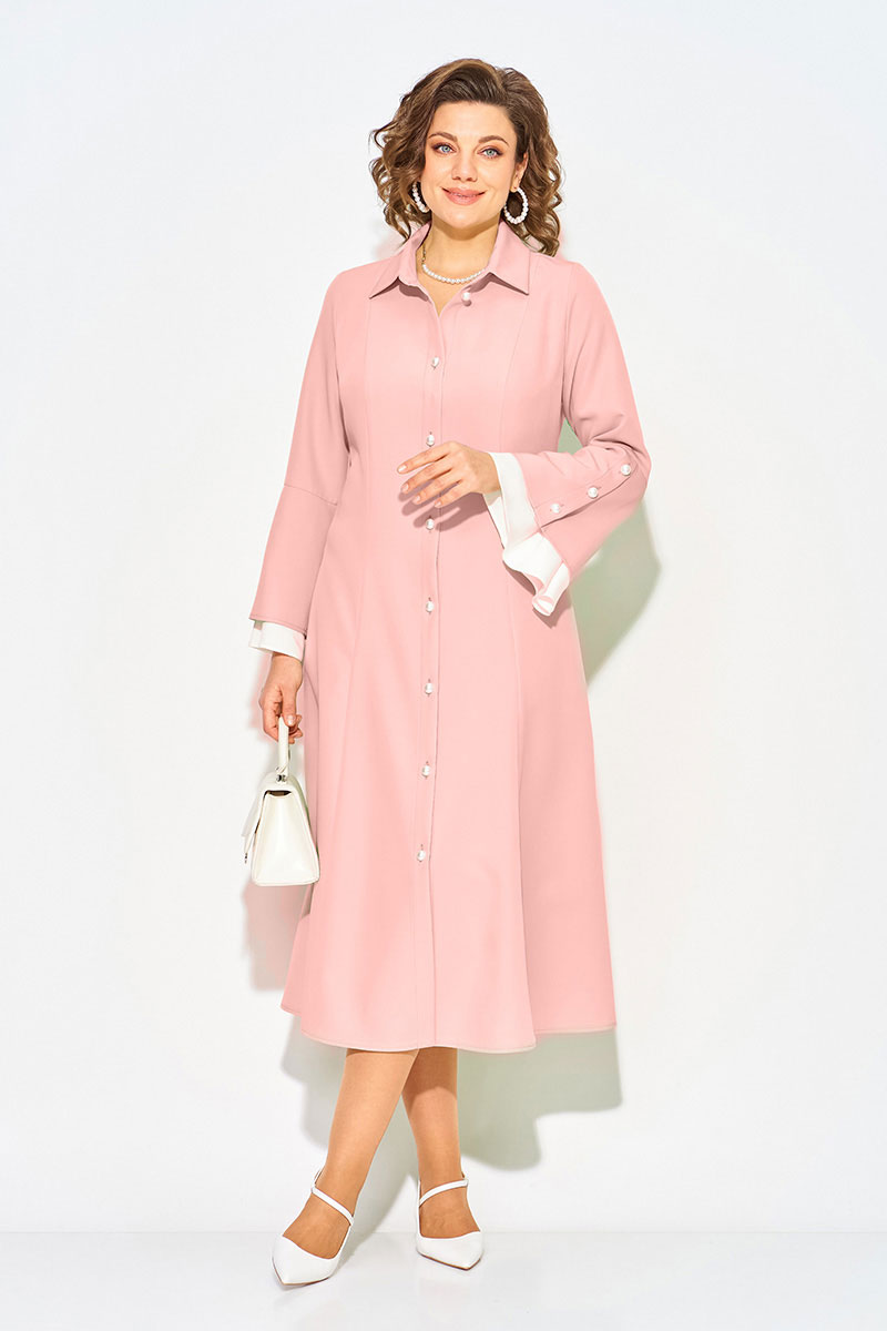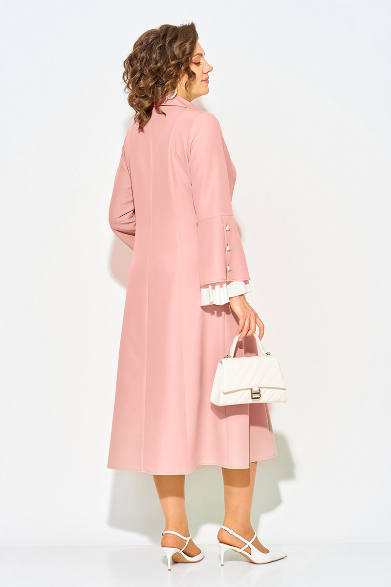 Нежное и романтическое, нарядное женское платье, длиной миди - станет отличным выбором для девушек и женщин, которые ценят комфорт и стиль.  Модель полуприлегающего силуэта с продольными рельефами по полочке и спинке. Воротник отложной на цельнокроеной стойке. Застежка центральная на петли и пуговицы на планке. Эффектный длинный рукав, слегка расклешен к низу; имеет рюшу из отделочной ткани нежно-жемчужного цвета. Пуговицы под жемчуг украшают планку рукава и изделия! В платье имеются боковые карманы.  Станьте обладательницей винтажного платья, чтобы подчеркнуть свою индивидуальность и создать стильный образ.