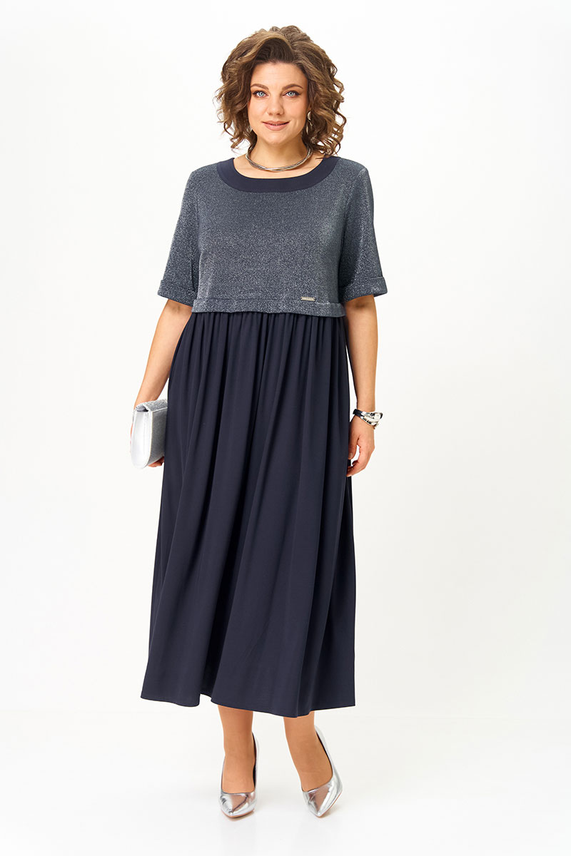 Сверху - ультракомфортный трикотаж с натуральными волокнами и мягким люрексом, снизу - лёгкое текстильное полотно, которое красиво драпируется и держит форму. Лёгкое сияние создаёт ощущение праздника без перегруза и дискомфорта.