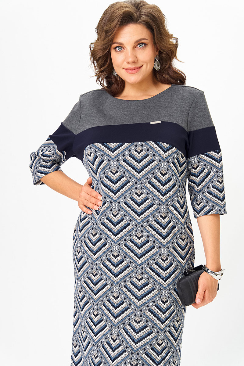 Это платье создано для женщин, которые ценят комфорт и изысканность в каждом образе. Плотный трикотаж высокого качества мягко обнимает фигуру, сохраняя форму и не вытягиваясь. Контрастное сочетание серого, темно-синего и геометрического узора визуально стройнит и освежает образ. Рукав ¾ и длина миди делают модель практичной и универсальной — удобно и в офисе, и на прогулке, и на встрече.