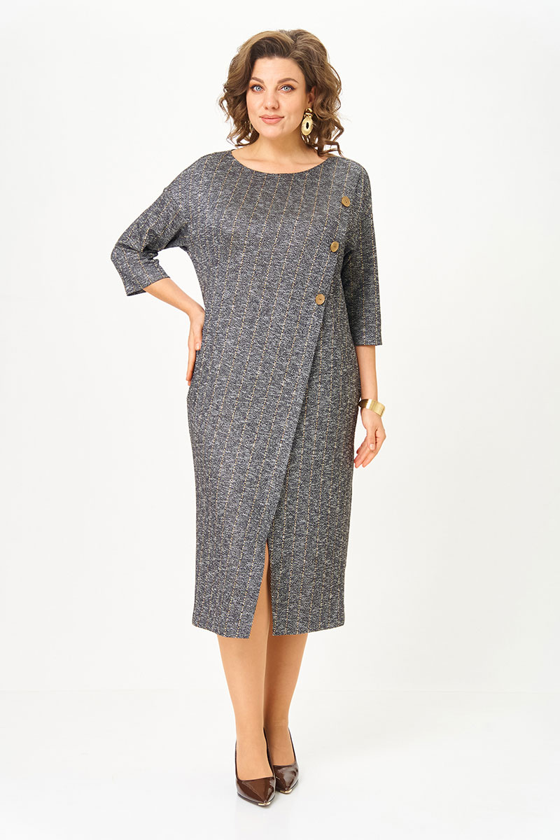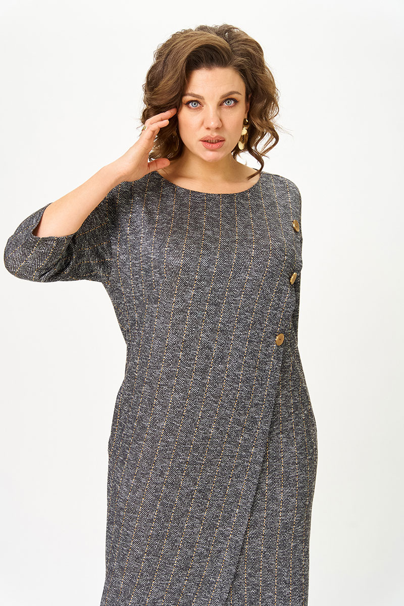 А имитация асимметричной застёжки с декоративными пуговицами добавляет изюминку и визуально вытягивает фигуру.