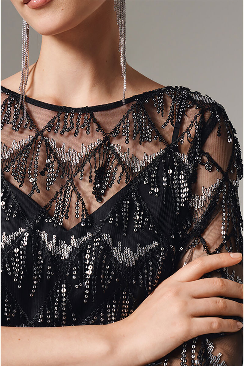 Эффектное женское платье прямого силуэта станет идеальным выбором для уверенных в себе женщин, ценящих комфорт и стиль. Платье выполнено из полупрозрачного фактурного полотна в пайетки. Идеальное для торжественного выхода, созданное, чтобы подчеркнуть вашу элегантность и чувство стиля. Элегантный силуэт и тщательно продуманные детали делают этот наряд безупречным выбором для особого вечера. Сочетание утонченного кроя и качественных материалов обеспечивает не только изысканный внешний вид, но и исключительный комфорт. Дополните его любимыми аксессуарами - и вы будете неотразимы на любом празднике. С любовью и заботой о Вас, команда бренда NELVA!