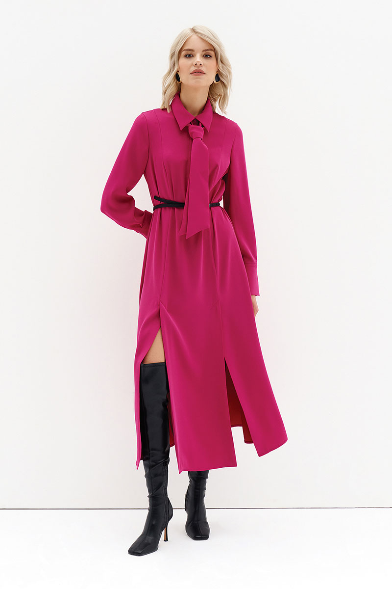 Женственное и при этом очень стильное платье. Разрезы и сьемный галстук делают его немного дерзким и бросающим вызов. Галстук можно использовать как пояс. Ремень не входит в комплект.