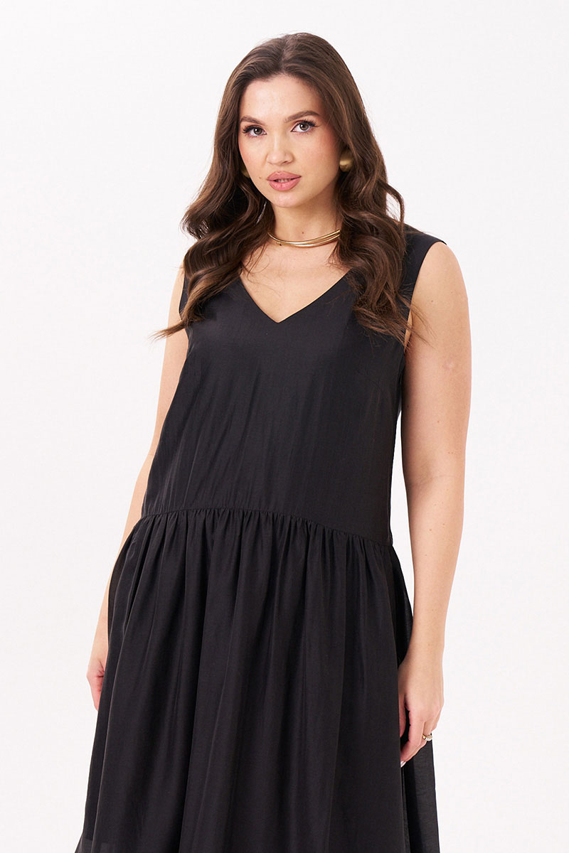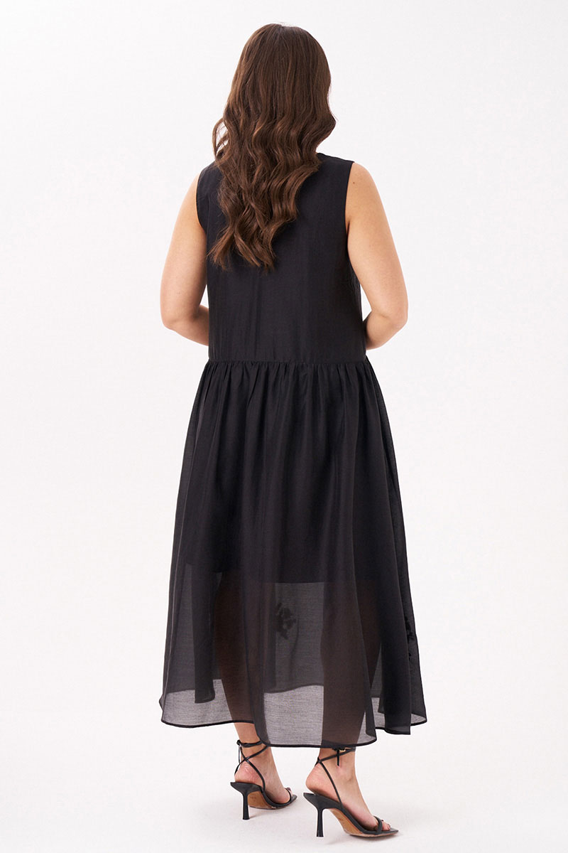 46 | Платье: Дл.спины от высшей плечевой точки до подреза - 50см, Длина изделия - 111.5см, Длина изделия от высшей плечевой точки до низа - 131см, Ширина плеча - 7см, Ширина по бедрам - 93.5см, Ширина по груди - 49см, Ширина по подрезу - 54см; |
