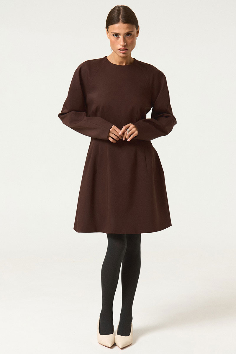 Платье приталенного силуэта с объемными рукавом реглан. Платье в длине мини. Платье с вытачками.
