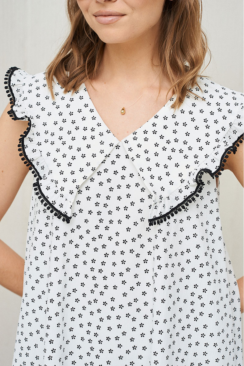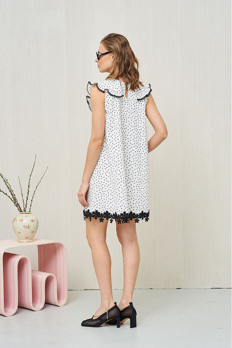 Платье из эластичной ткани с принтом в мелкий цветок. Платье на подкладке. Молния в боковом шве. Декорировано тесьмой.