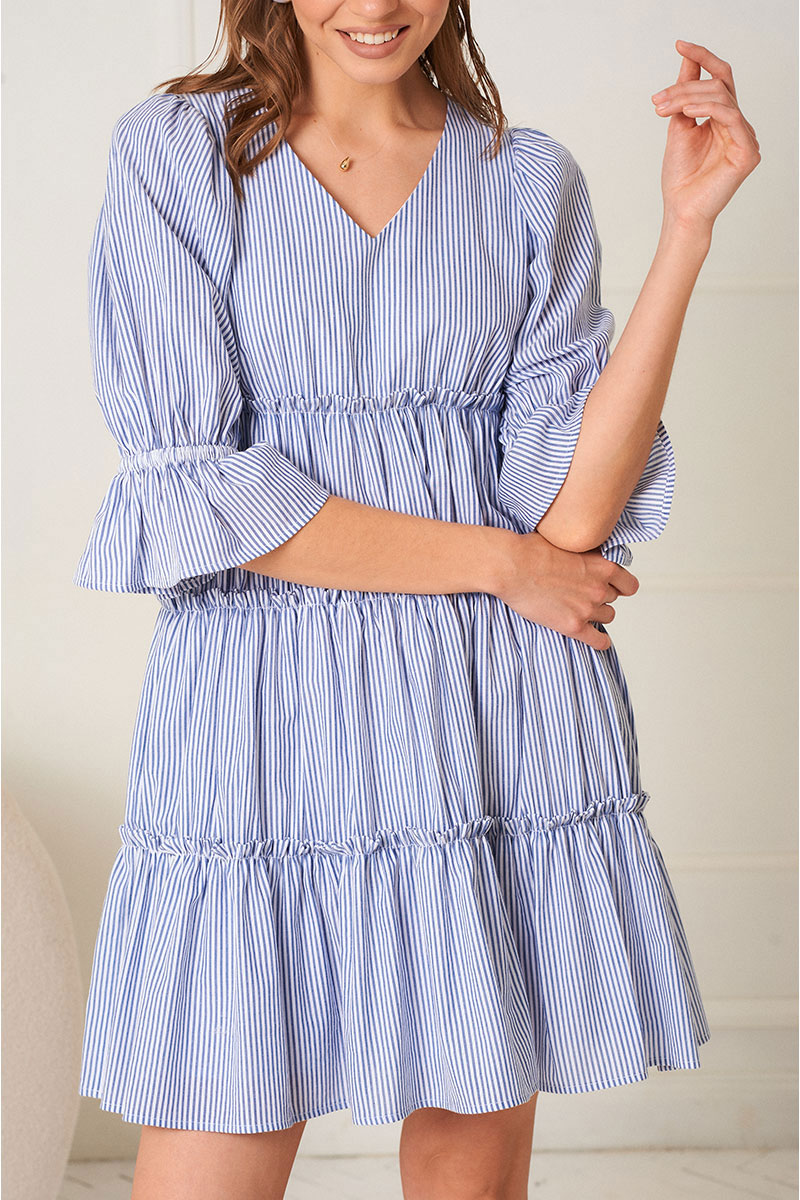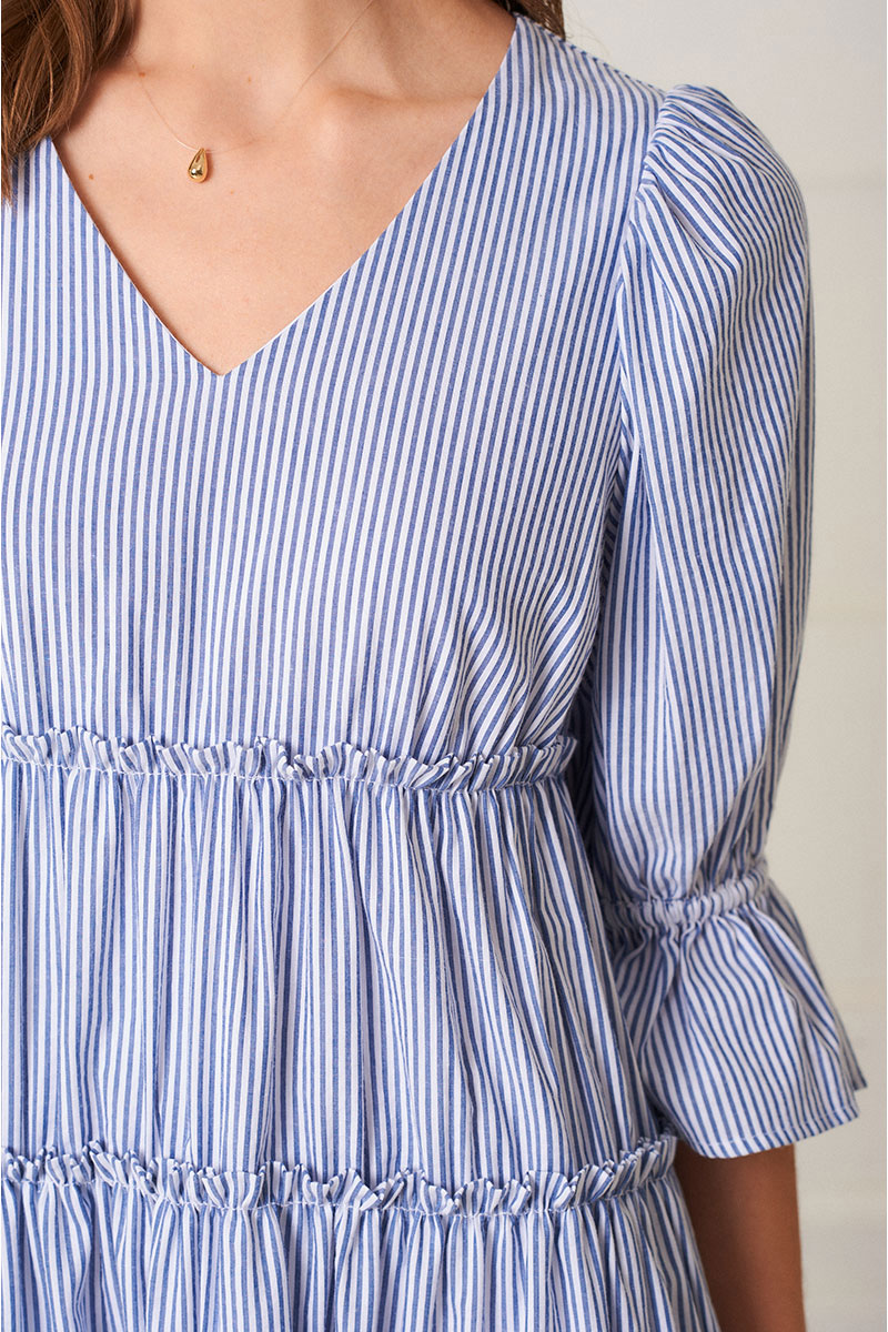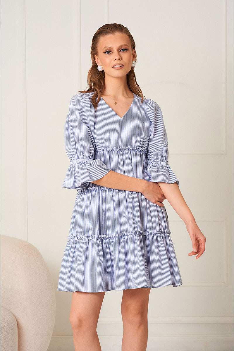 Платье из хлопковой ткани с принтом в полоску. А-силуэт. На подкладке.