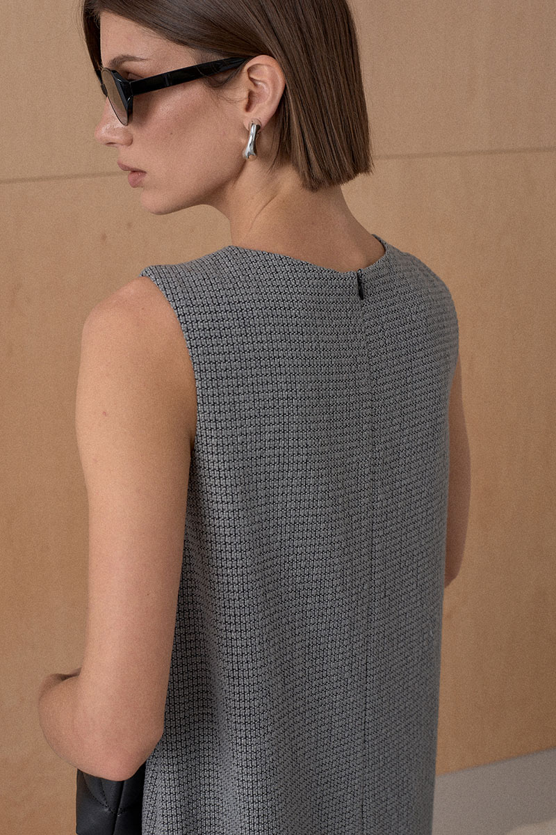 Платье в длине мини А-силуэта из твида. Платье на подкладке.