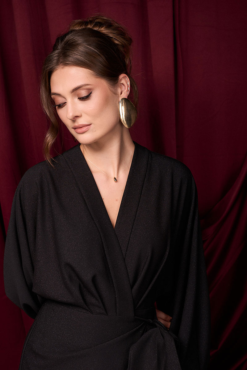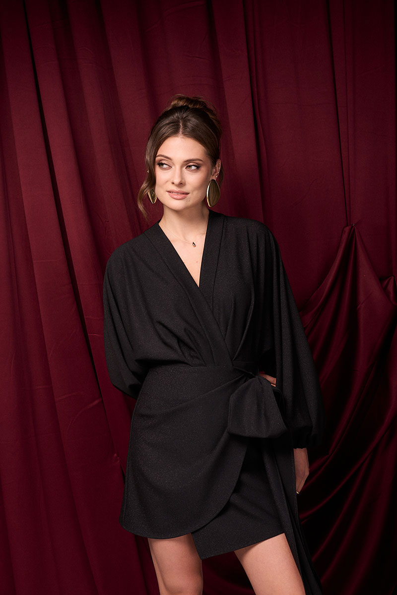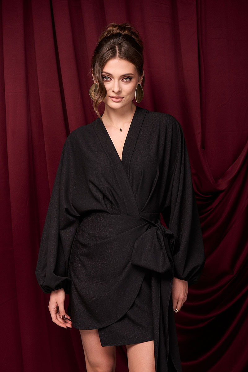 Платье из ткани с деликатным блеском. Платье на запАх, фиксируется на пуговицу и длинные ленты, которые можно подвязать красивым бантом.