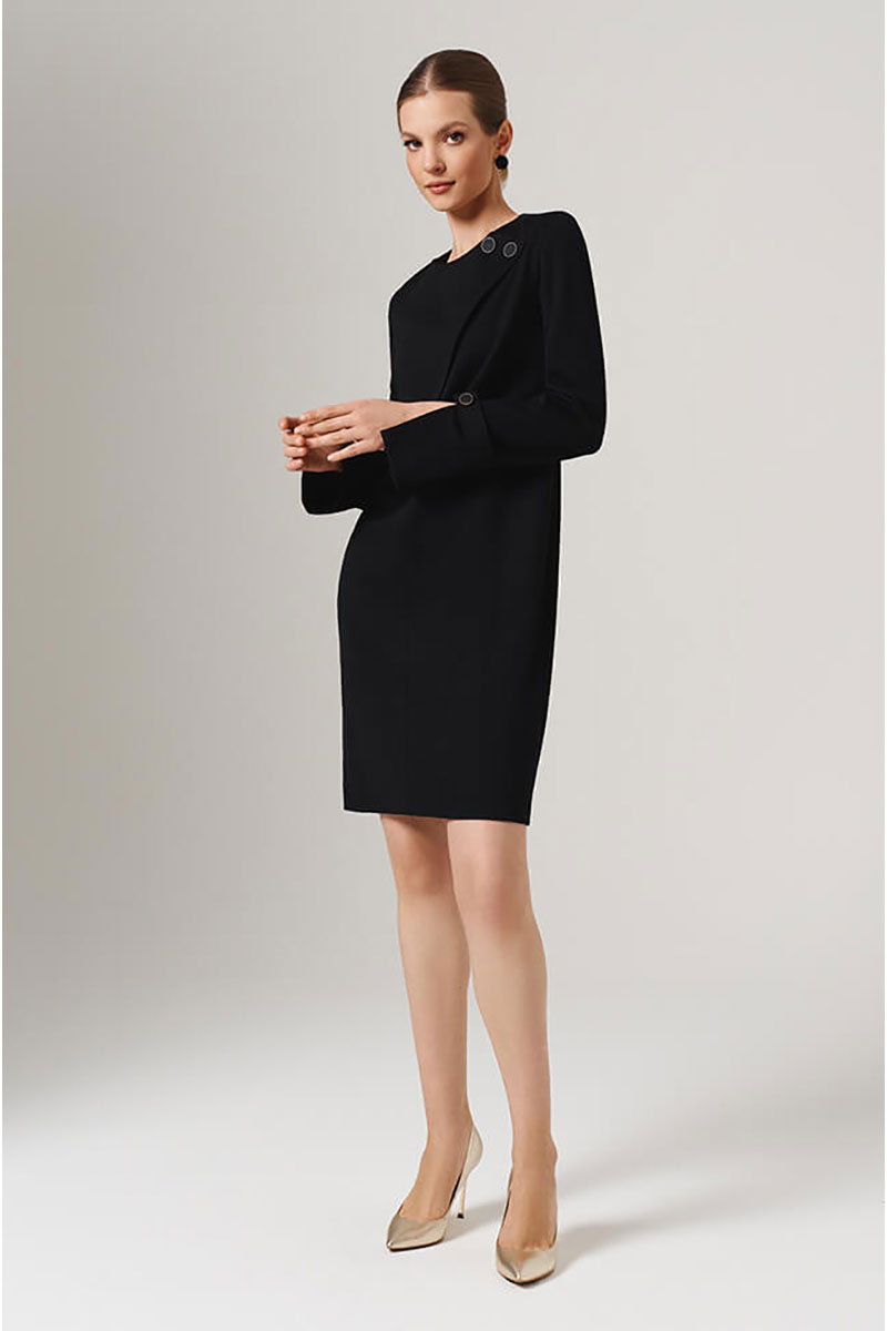 Элегантное женское платье на подкладке прямого силуэта станет идеальным выбором для уверенных в себе женщин, ценящих комфорт и стиль. Платье выполнено из костюмного полотна с округлый вырез горловины с асимметричной застежкой на пуговицы. Удлиненные рукава заканчиваются разрезами, декорированы хлястиком с пуговицей, придавая образу утонченность и немного игривости. Платье прекрасно подойдет для особых случаев, а также станет идеальным выбором для любительниц комфортных и одновременно романтичных изделий. Покажите свою уникальную личность и индивидуальность с этим платьем! Создайте стильный образ уже сегодня! С любовью и заботой о Вас, команда бренда NELVA!