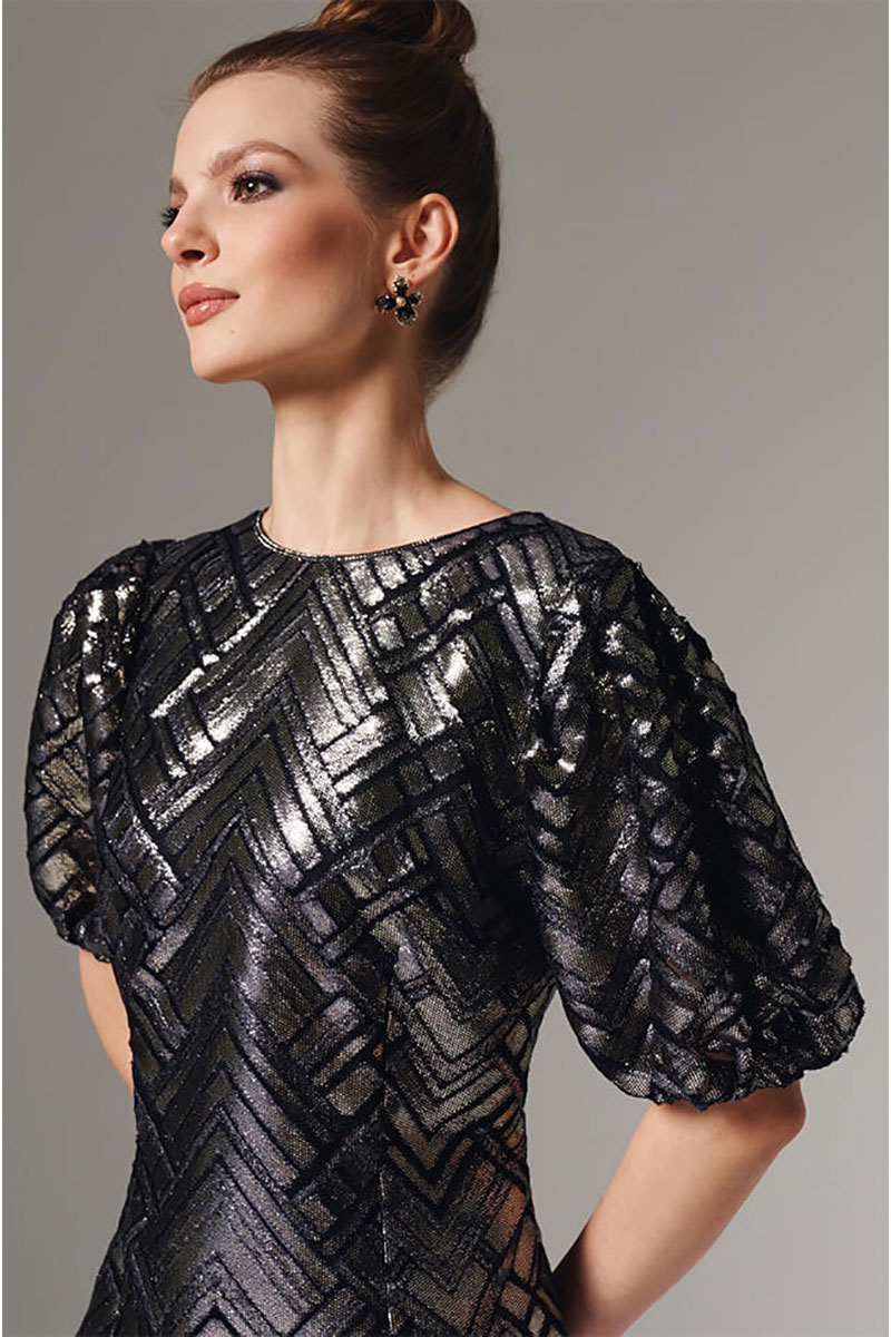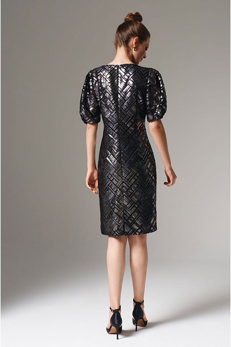 Вечернее женское платье на подкладке от бренда NELVA — это идеальный выбор для тех, кто ценит комфорт и элегантность в своем гардеробе. Платье прекрасно подчеркнет Вашу индивидуальность и уверенность в себе. Оно обязательно подойдет для особого случая. Это элегантное платье прямого силуэта, выполнено из фактурного полотна с эффектом мерцания. Особенностью являются рукава-фонарики, сосборены на эластичную резинку. Средний шов спинки с застежкой на потайную молнию, заканчивается деликатным разрезом. Этот предмет гардероба — идеальный спутник для особых моментов и создания впечатляющих образов. С любовью и заботой о Вас, команда бренда NELVA.