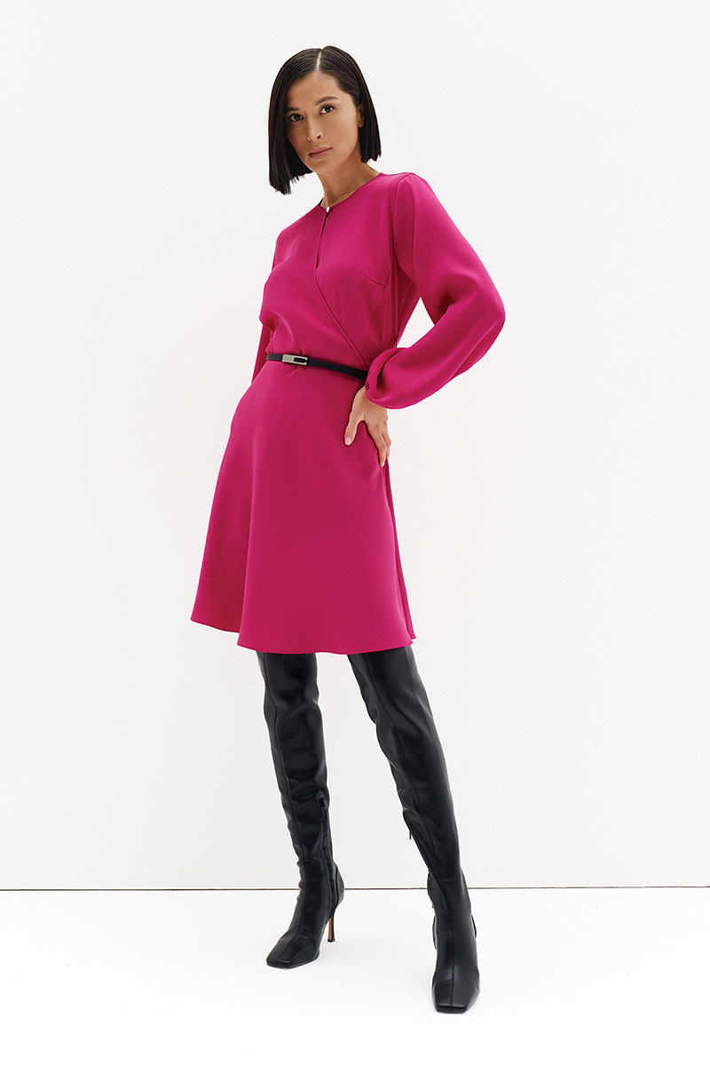 Платье подойдёт как для особого случая, так и на каждый день. Отрезное по линии талии, в боковом шве потайная молния, ремень не входит в комплект.