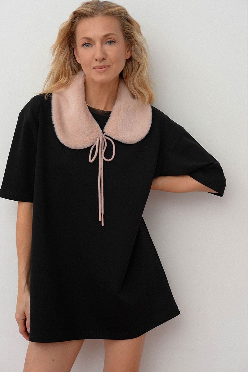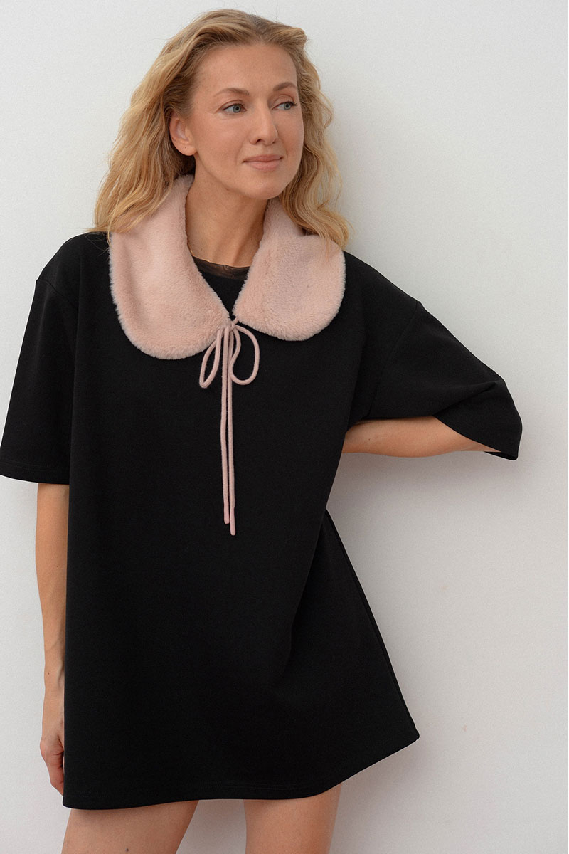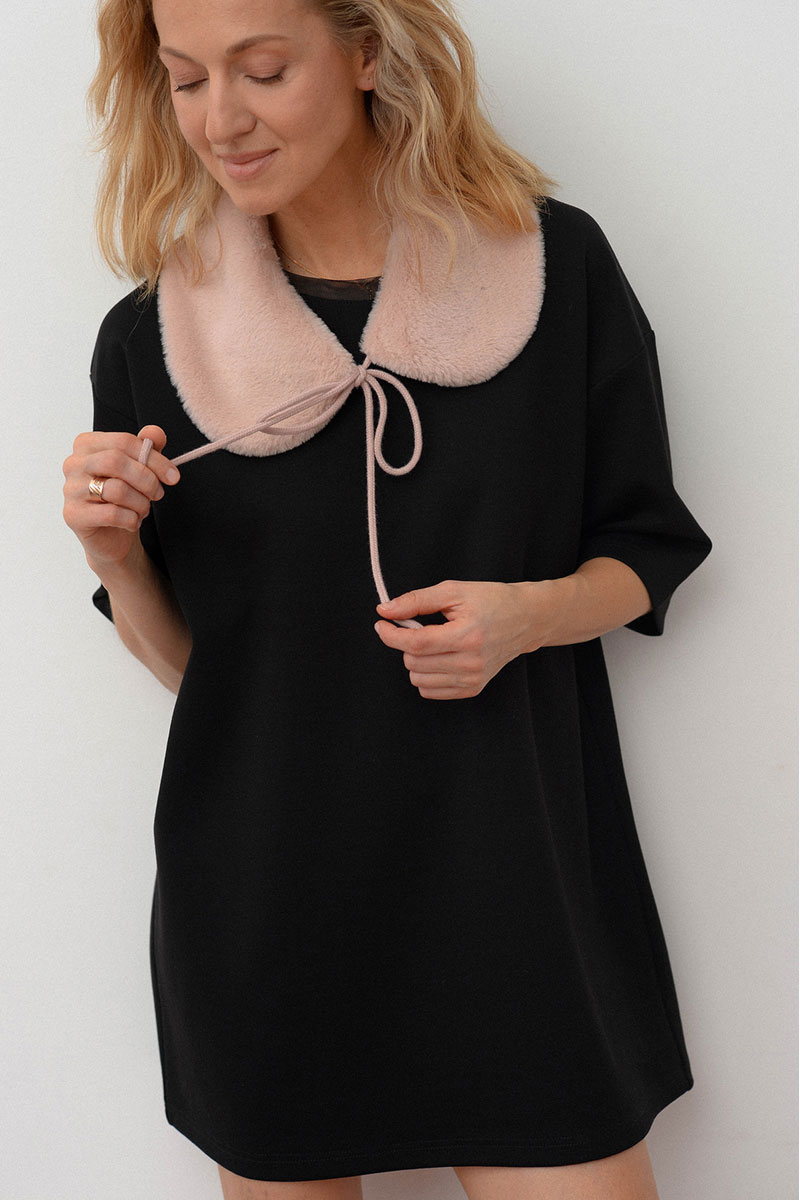 Платье мини со съемным воротником. Лаконичное, но запоминающееся благодаря съемному воротнику в пудровом оттенке из итальянского экомеха. Идеально в случаях, когда образ должен быть комфортным и изящным одновременно. Выполнено из плотной приятной к коже хлопковой ткани. Горловина обработана нежной сеткой в тон платья.