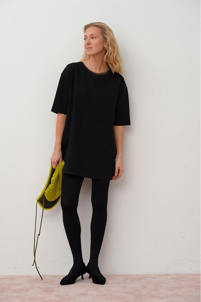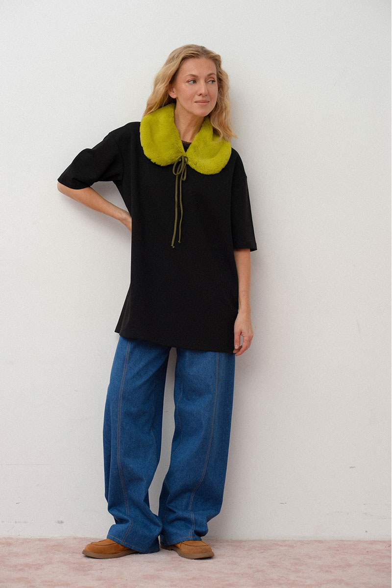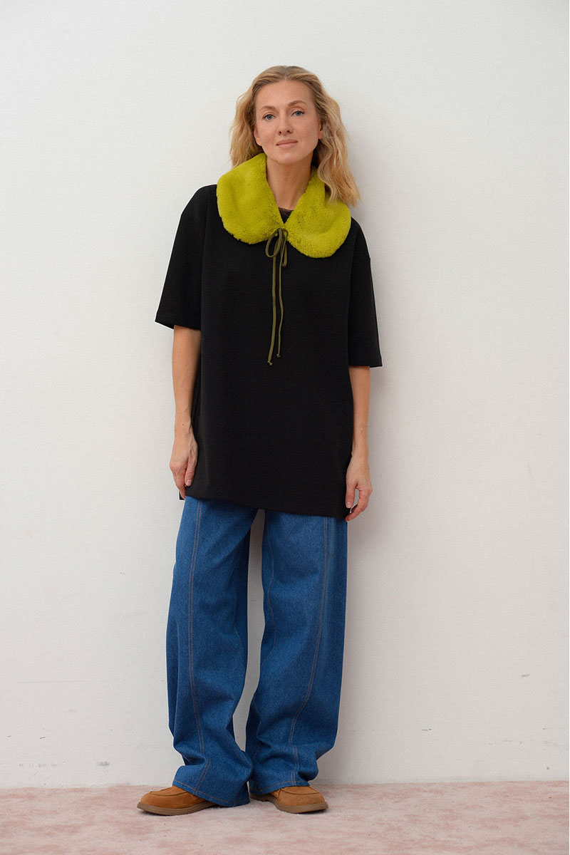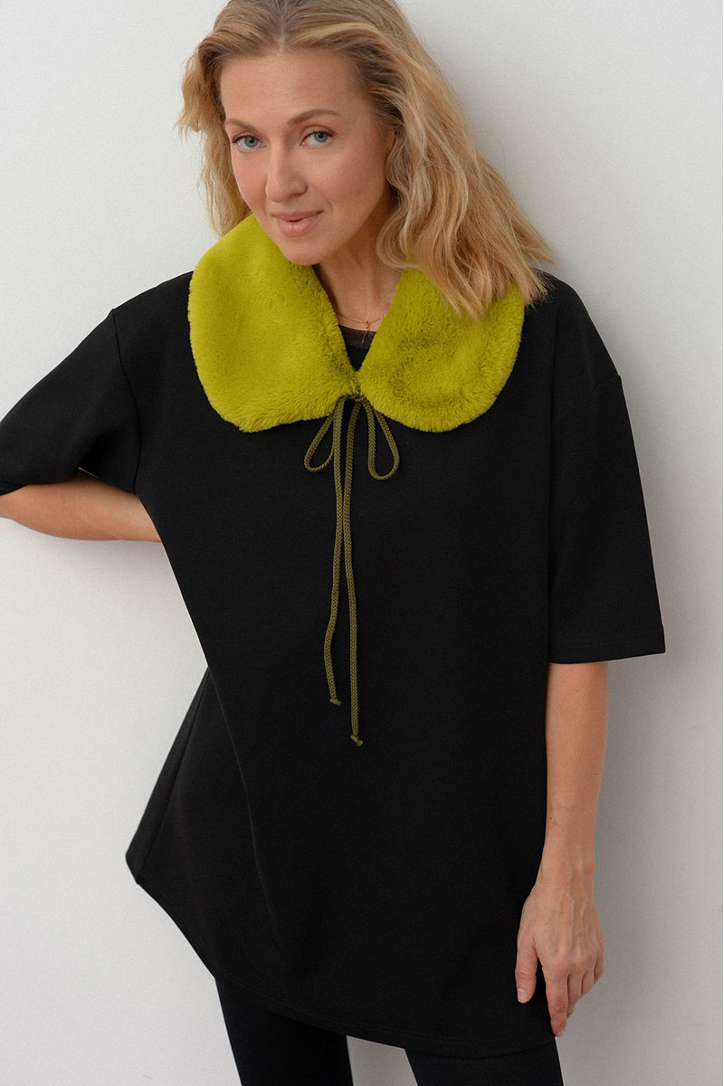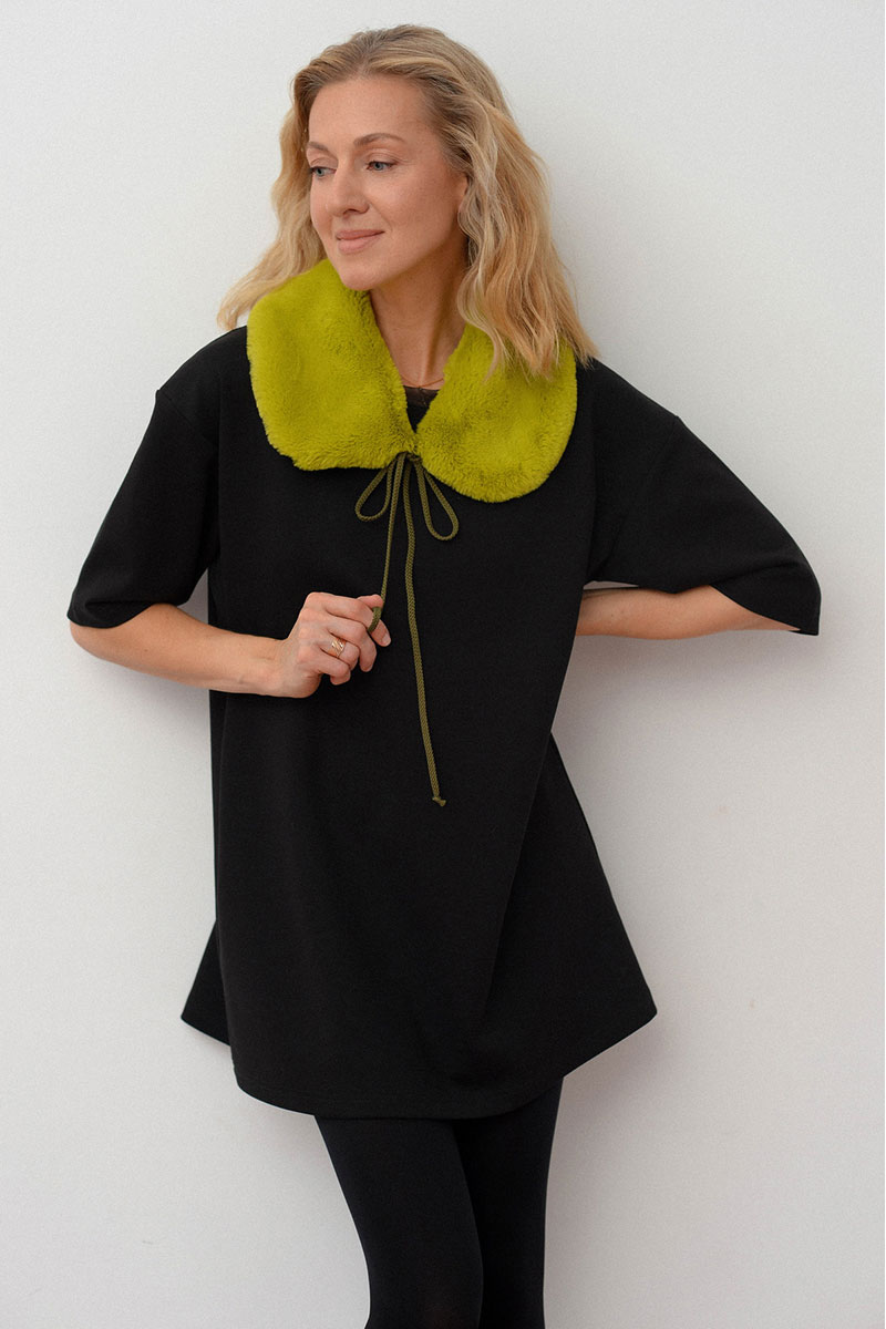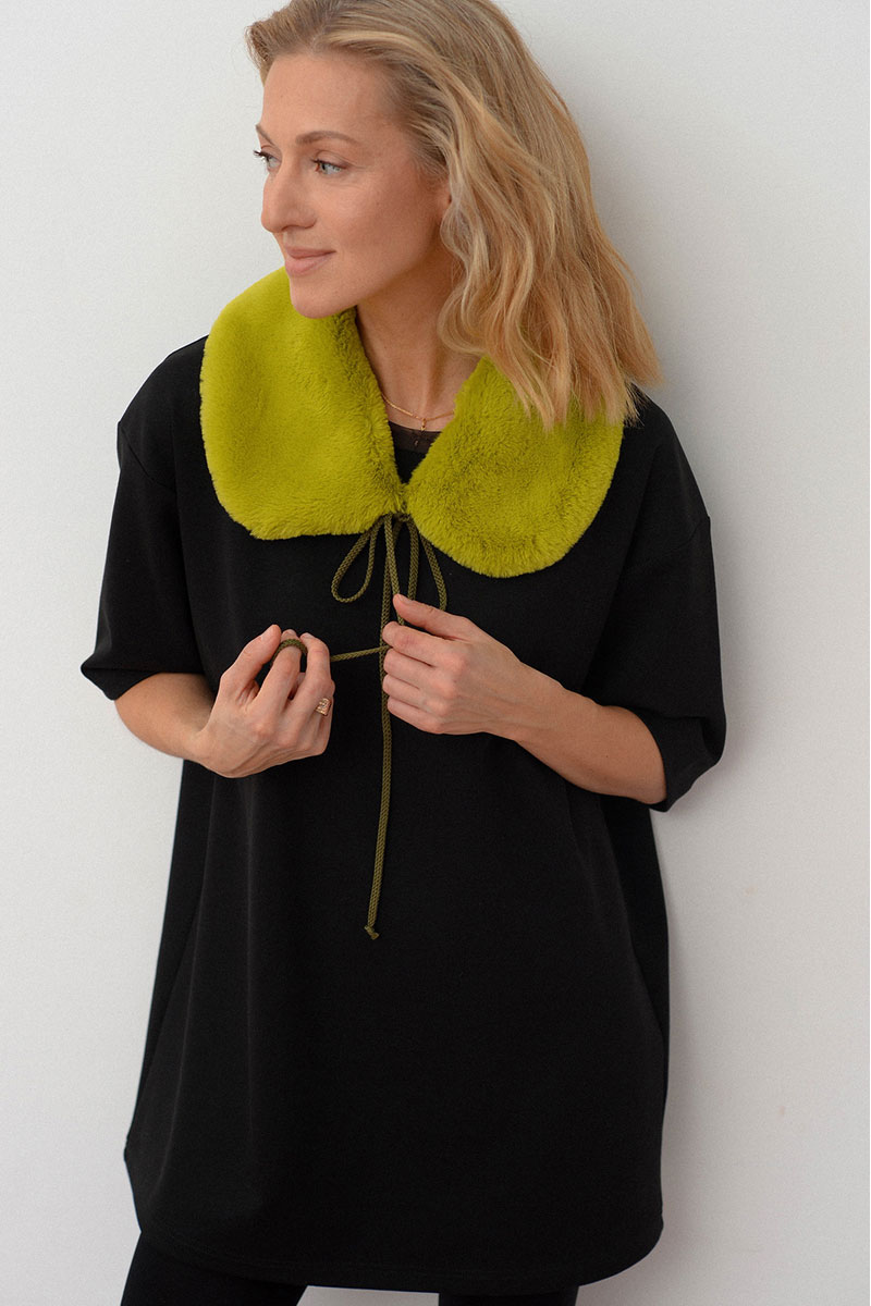 Платье мини со съемным воротником. Лаконичное, но запоминающееся благодаря съемному воротнику в зеленом оттенке из итальянского экомеха. Идеально в случаях, когда образ должен быть комфортным и изящным одновременно. Выполнено из плотной приятной к коже хлопковой ткани. Горловина обработана нежной сеткой в тон платья.