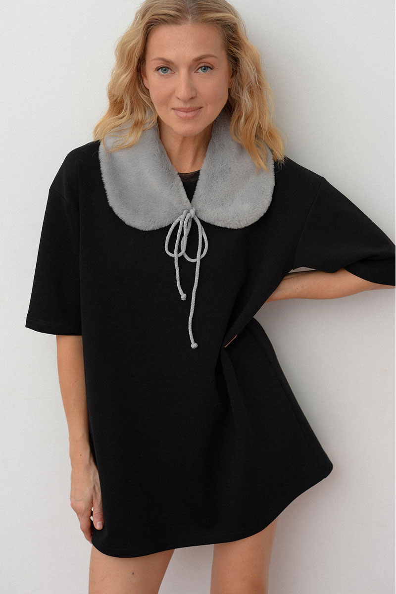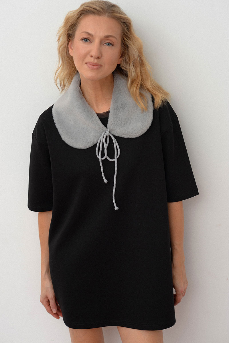 Платье мини со съемным воротником . Лаконичное, но запоминающееся благодаря съемному воротнику в сером оттенке из итальянского экомеха. Идеально в случаях, когда образ должен быть комфортным и изящным одновременно. Выполнено из плотной приятной к коже хлопковой ткани. Горловина обработана нежной сеткой в тон платья.