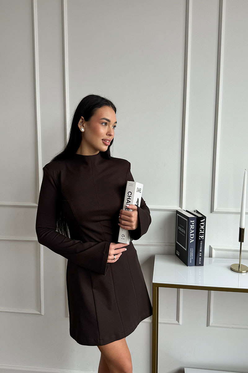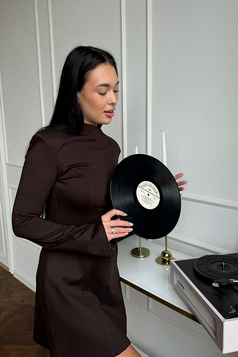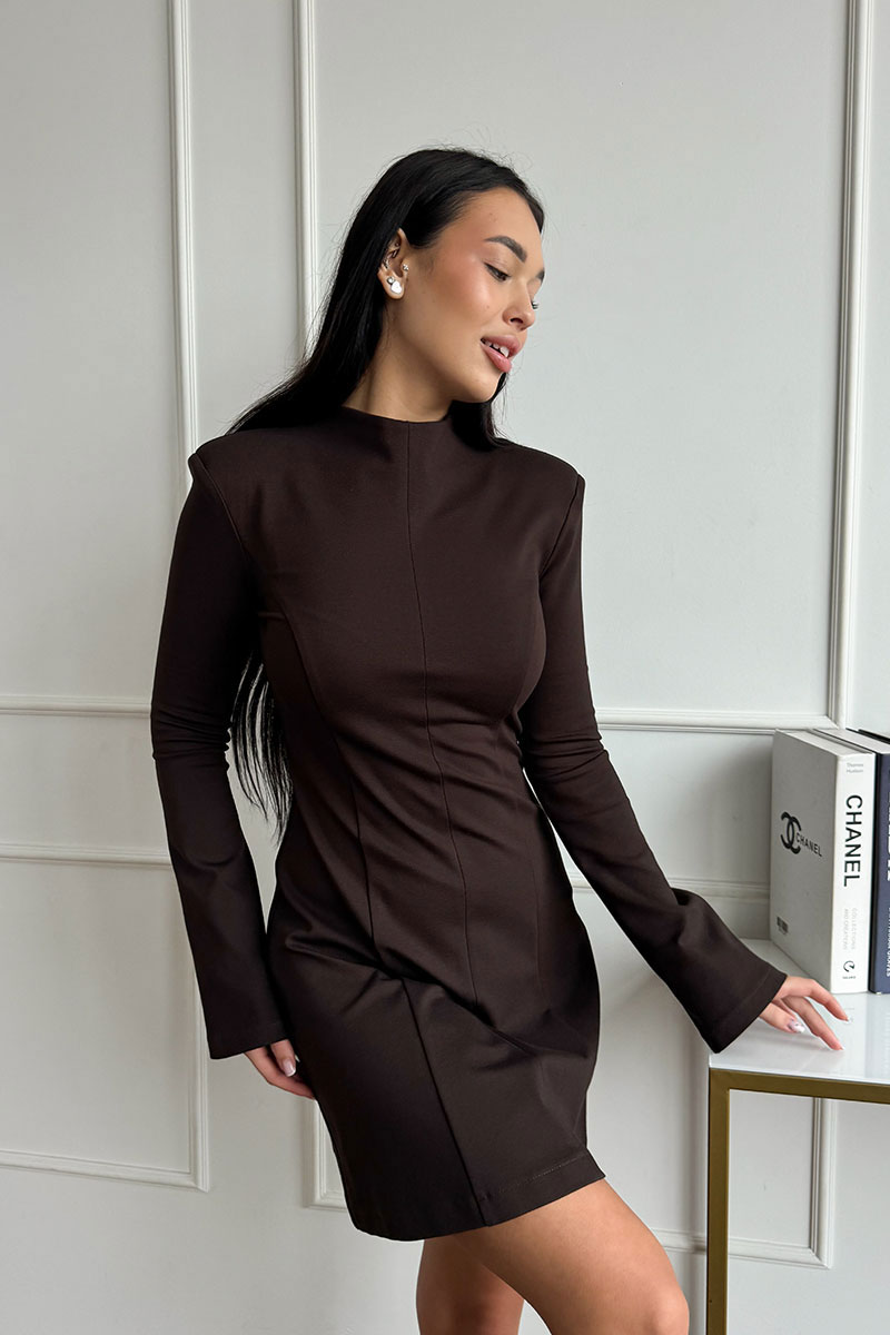 Платье из плотного трикотажа, приталенного кроя. Рост модели 168 см.
