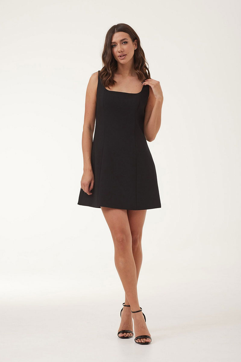 Маленькое черное платье полуприлегающего силуэта выполнено из костюмной ткани. Платье на подкладке Горловина углубленная. По полочке талиевые вытачки. Спинка со средним швом, вверху которого потайная тесьма-молния.