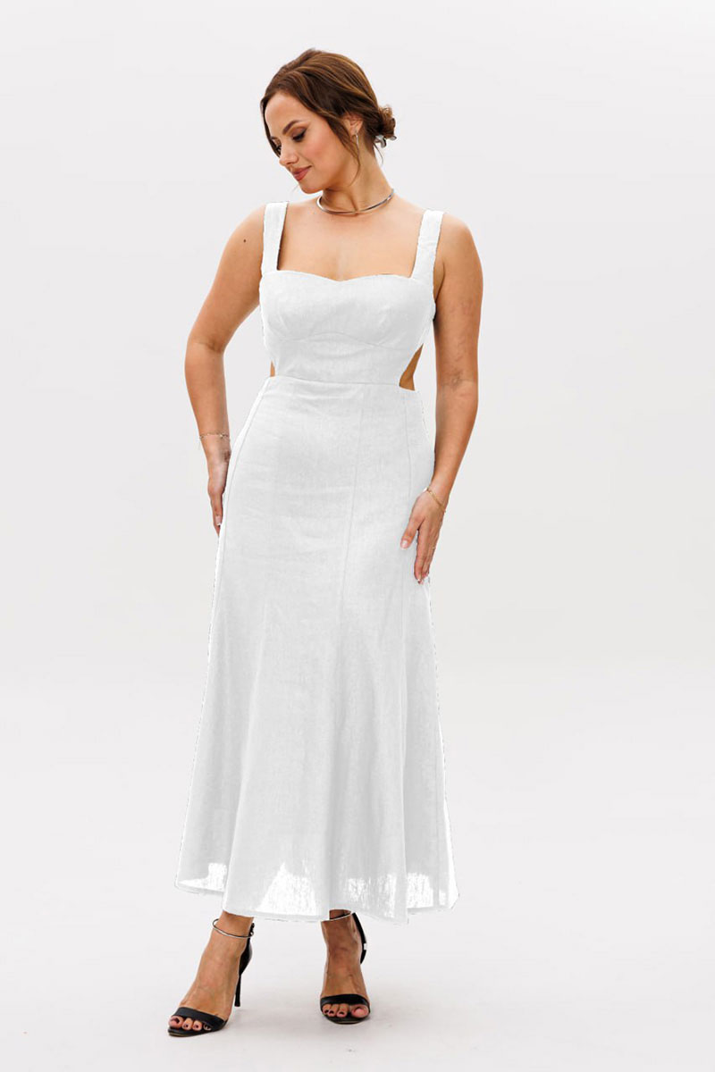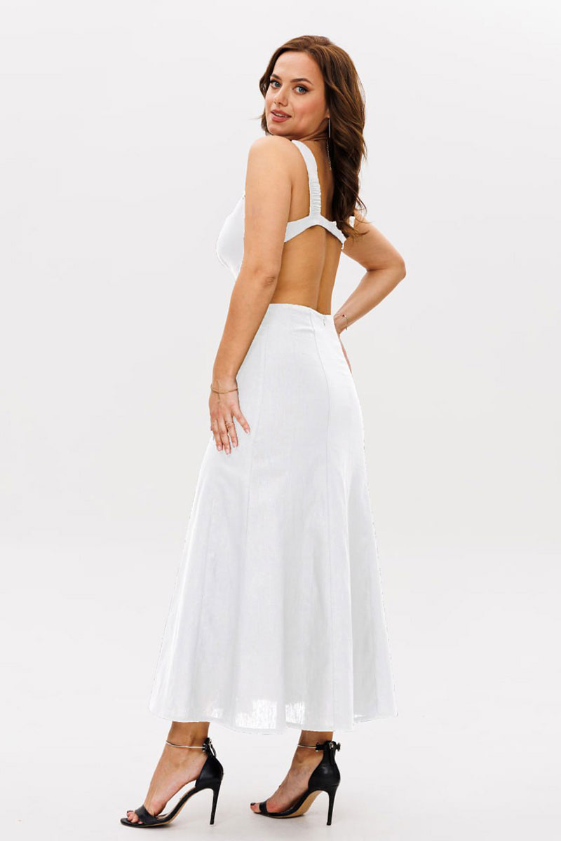 Платье прилегающего силуэта, расклешенное к низу, Застежка на тесьму-молнию в среднем шве спинки юбки. Элегантный черный сарафан из крапивы — идеальный выбор для тех, кто ценит стиль и комфорт. Модель выполнена с открытым верхом и спинкой, создавая эффектный контраст между элегантностью и современностью. Прямой крой юбки подчеркивает фигуру. Сарафан дополнен внутренней подкладкой для максимального комфорта.