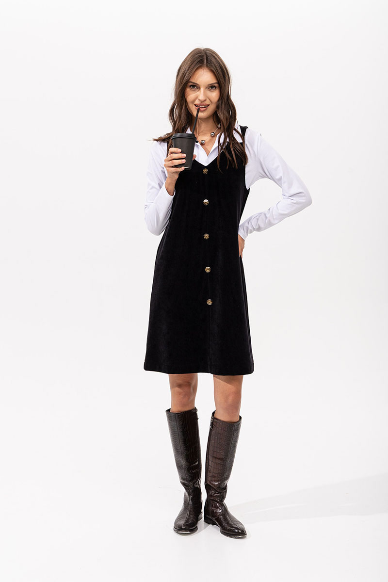 Стильный сарафан-комбинезон из вельвета с пуговицами