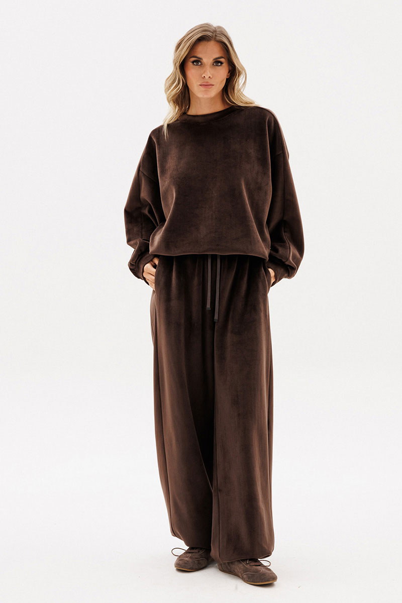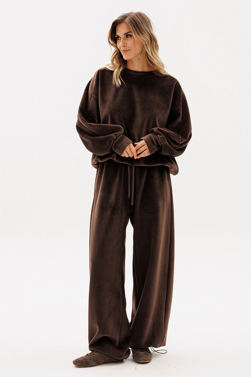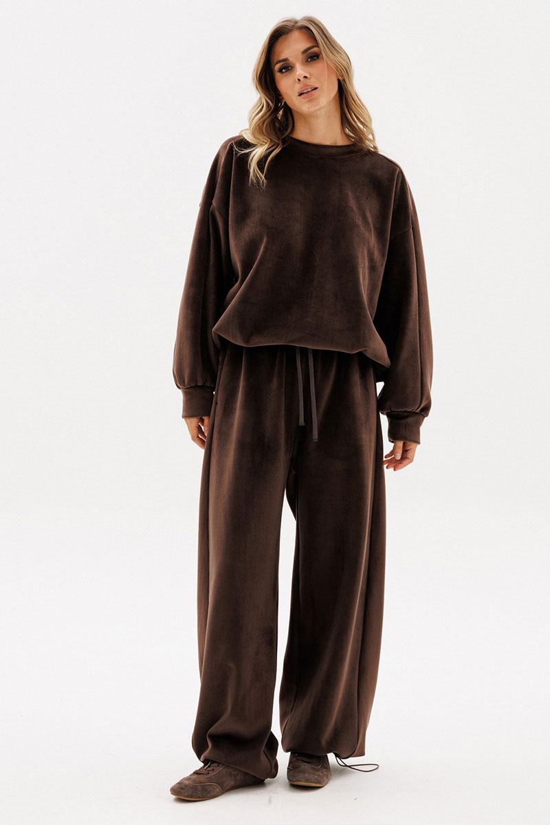 Комплект: джемпер+брюки. Комплект выполнен из двустороннего велюра в мелкий рубчик.