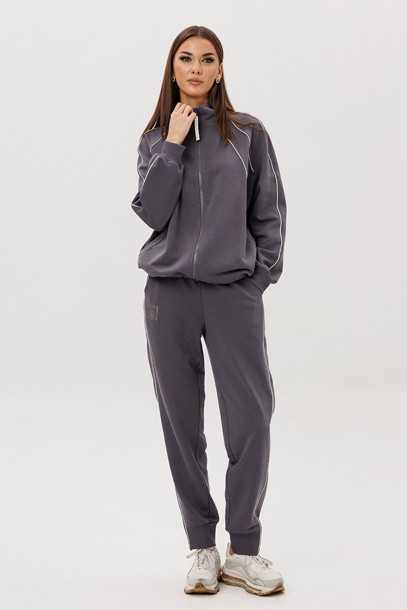 Современный костюм в стиле спорт-кэжуал — идеальный баланс комфорта и актуального дизайна. Модель выполнена из мягкого трикотажного полотна с добавлением хлопка, обеспечивающего приятные тактильные ощущения и свободу движений.