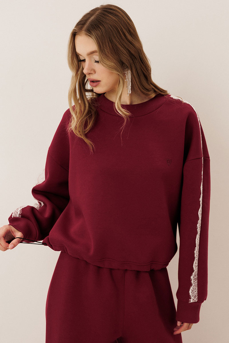 контрастный кружево от горловины до манжеты