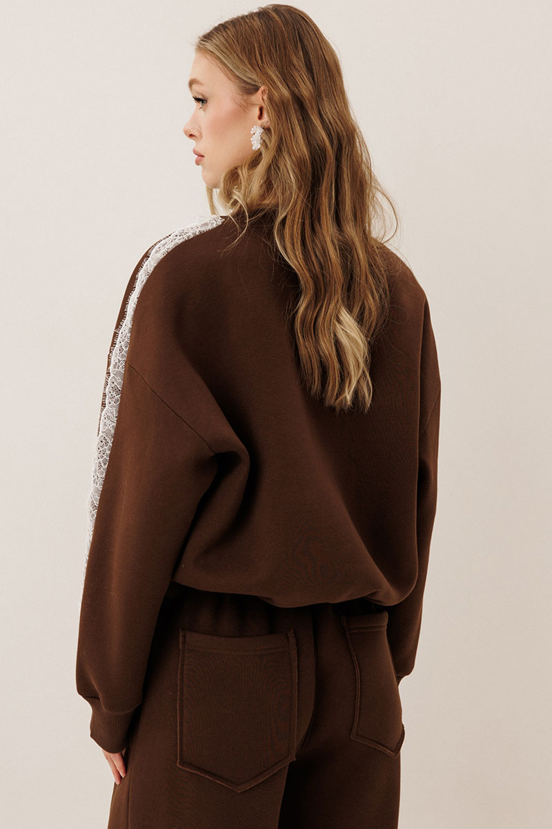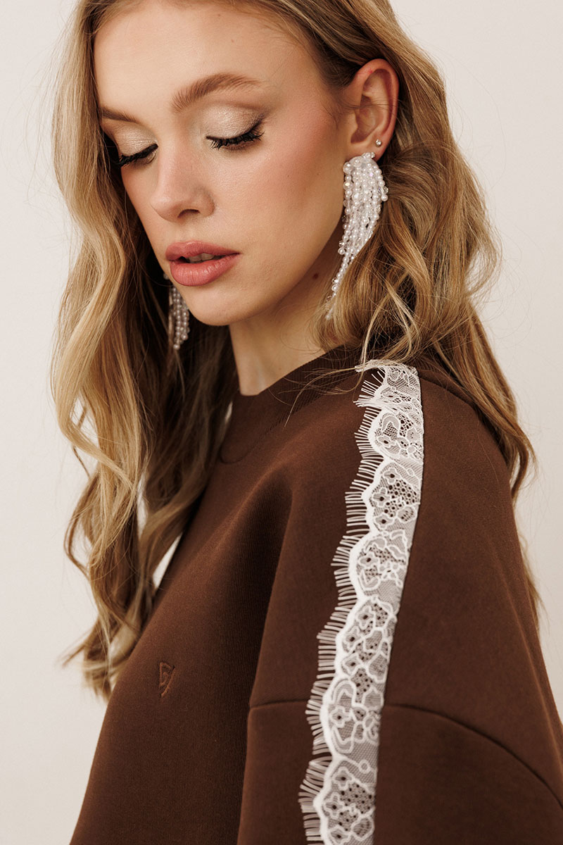 контрастный кружево от горловины до манжеты
